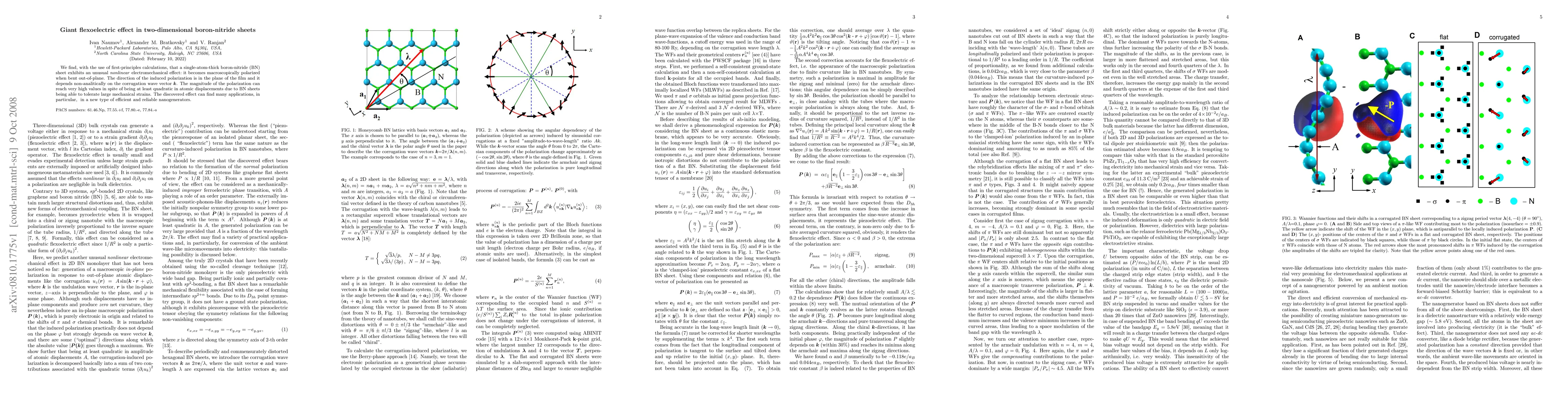 We find, with the use of first-principles calculations, that a single-atom-thick boron-nitride (BN) sheet exhibits an unusual nonlinear electromechanical effect: it becomes macroscopically polarized when bent out-of-plane. The direction of the induced polarization is in the plane of the film and it depends non-analitically on the corrugation wave vector k. The magnitude of the polarization can reach very high values in spite of being at least quadratic in atomic displacements due to BN sheets being able to tolerate large mechanical strains. The discovered effect can find many applications, in particular, in a new type of efficient and reliable nanogenerators.