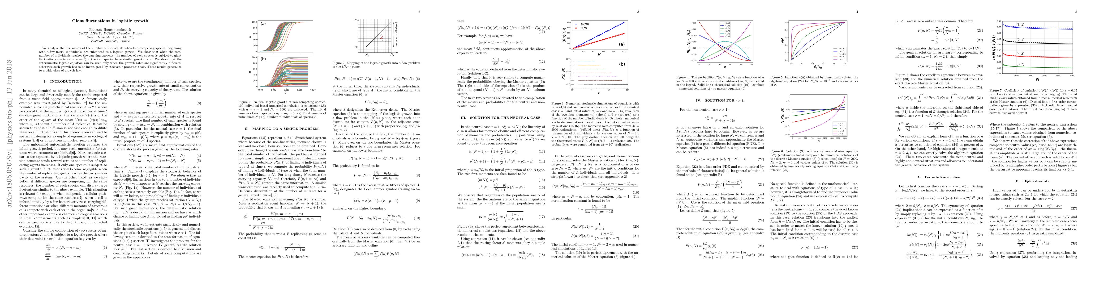 We analyze the fluctuation of the number of individuals when two competing species, beginning with a few initial individuals, are submitted to a logistic growth. We show that when the total number of individuals reaches the carrying capacity, the number of each species is subject to giant fluctuations (variance $\sim$ mean 2) if the two species have similar growth rate. We show that the deterministic logistic equation can be used only when the growth rates are significantly different, otherwise such growth has to be investigated by stochastic processes tools. These results generalize to a wide class of growth law.