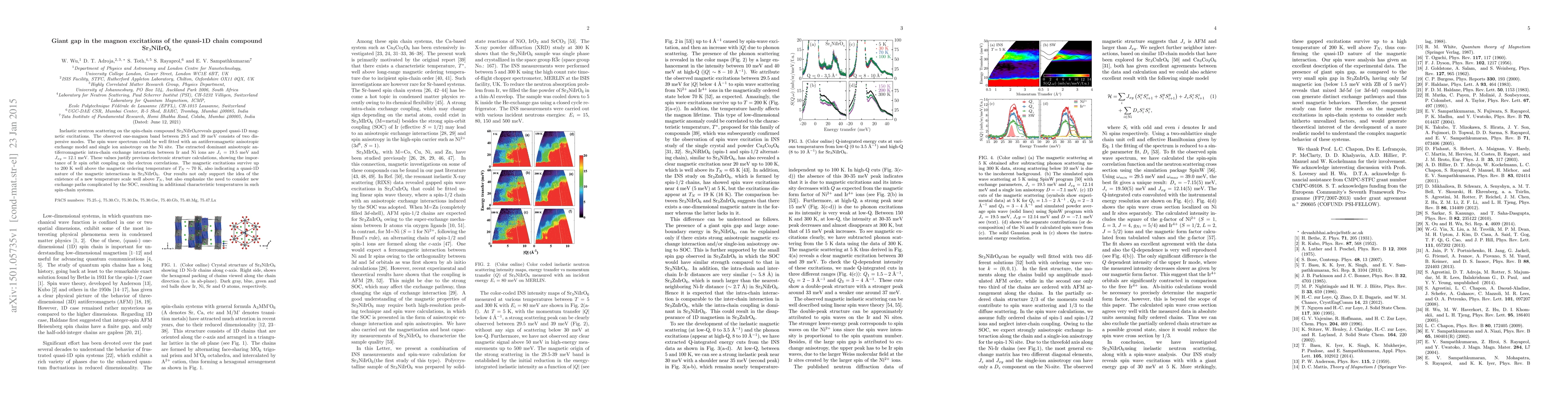 Inelastic neutron scattering on the spin-chain compound Sr$_3$NiIrO$_6$ reveals gapped quasi-1D magnetic excitations. The observed one-magnon band between 29.5 and 39 meV consists of two dispersive modes. The spin wave spectrum could be well fitted with an antiferromagnetic anisotropic exchange model and single ion anisotropy on the Ni site. The extracted dominant anisotropic antiferromagnetic intra-chain exchange interaction between Ir and Ni ions are $J_z=19.5$ meV and $J_{xy}=12.1$ meV. These values justify previous electronic structure calculations, showing the importance of Ir spin orbit coupling on the electron correlations. The magnetic excitations survive up to 200 K well above the magnetic ordering temperature of $T_N \sim 70$ K, also indicating a quasi-1D nature of the magnetic interactions in Sr$_3$NiIrO$_6$. Our results not only support the idea of the existence of a new temperature scale well above $T_N$, but also emphasize the need to consider new exchange paths complicated by the SOC, resulting in additional characteristic temperatures in such spin-chain systems.