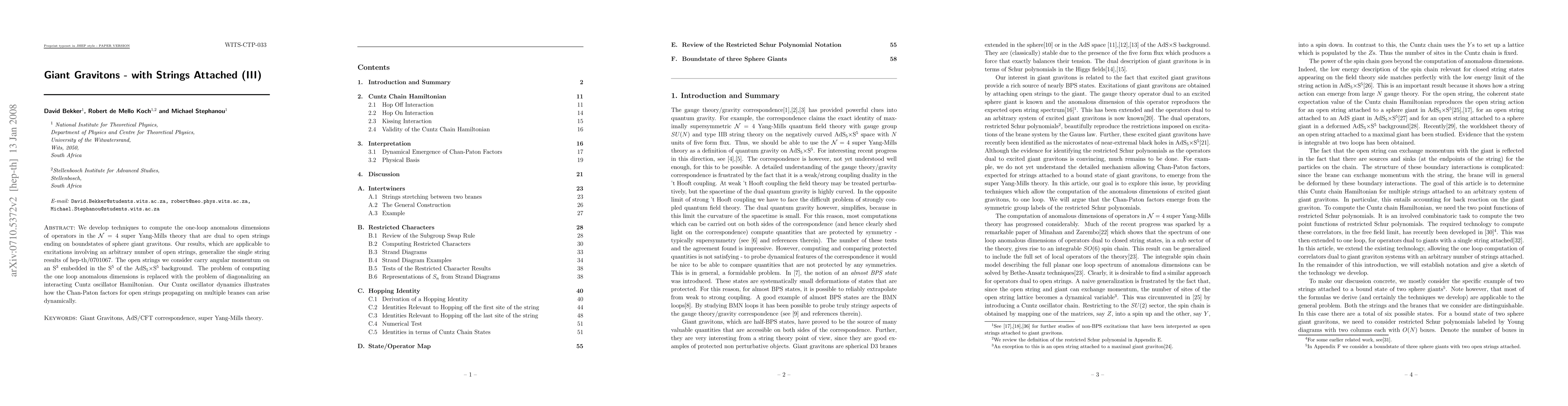 This paper develops methods to calculate one-loop anomalous dimensions for operators in $\mathcal{N}=4$ super Yang-Mills theory, which correspond to open strings attached to bound states of giant gravitons on an $S^3$. The techniques generalize previous single string results and involve diagonalizing an interacting Cuntz oscillator Hamiltonian, illustrating how Chan-Paton factors emerge dynamically.