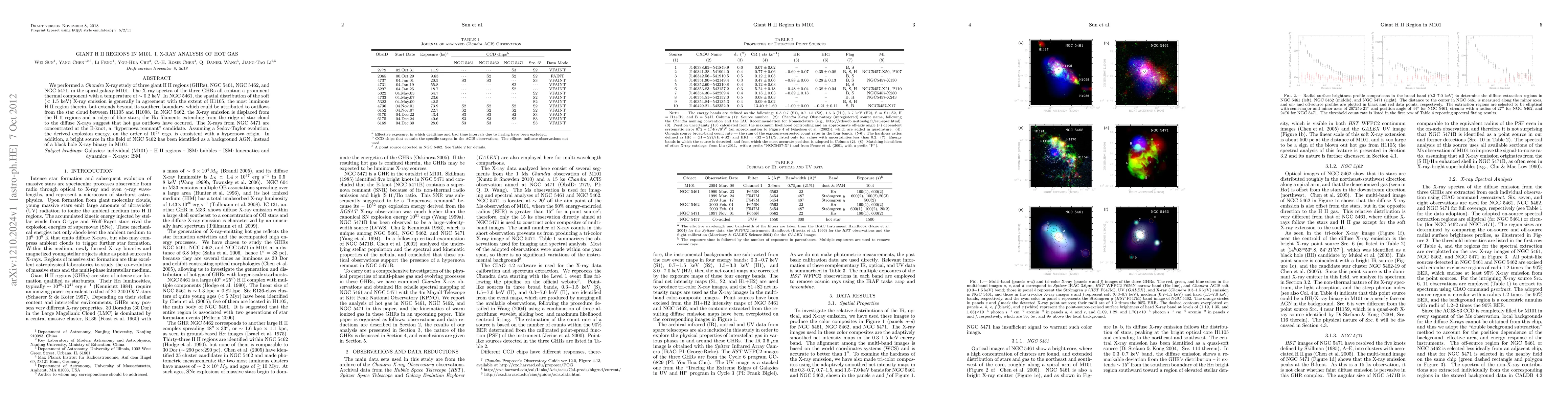 Researchers analyzed X-ray emissions from three giant H II regions in the galaxy M101 using Chandra data, revealing thermal components with temperatures around 0.2 keV and signs of hot gas outflows, suggesting hypernova origins.