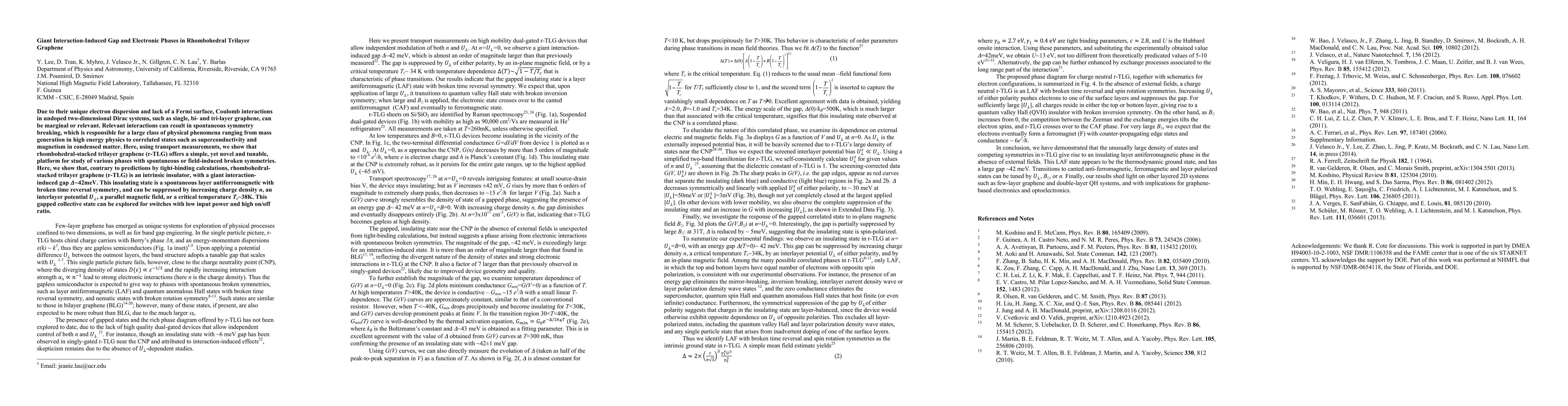 The research demonstrates that rhombohedral-stacked trilayer graphene (r-TLG) is an intrinsic insulator with a large interaction-induced gap of ~42 meV, exhibiting spontaneous antiferromagnetic properties and broken time reversal symmetry, which can be suppressed by various external factors. This new insulating phase offers potential for low-power electronic switches.