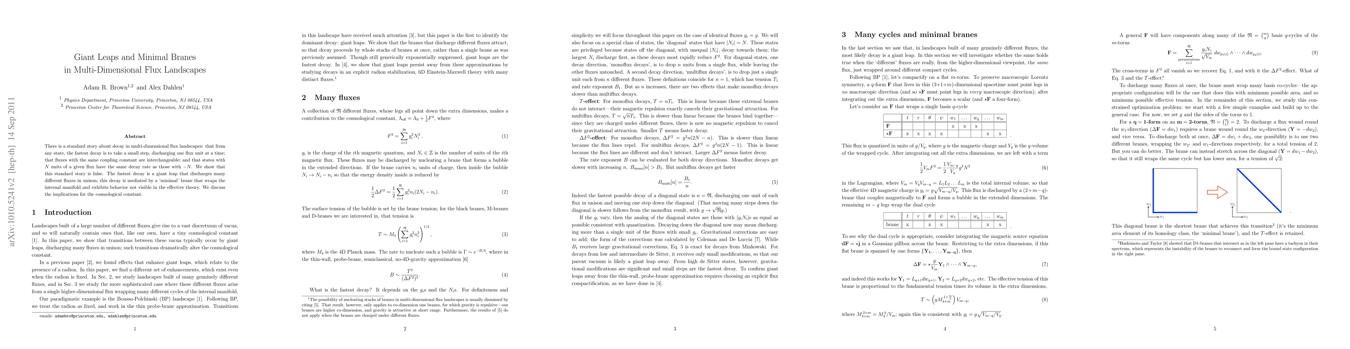 There is a standard story about decay in multi-dimensional flux landscapes: that from any state, the fastest decay is to take a small step, discharging one flux unit at a time; that fluxes with the same coupling constant are interchangeable; and that states with N units of a given flux have the same decay rate as those with -N. We show that this standard story is false. The fastest decay is a giant leap that discharges many different fluxes in unison; this decay is mediated by a 'minimal' brane that wraps the internal manifold and exhibits behavior not visible in the effective theory. We discuss the implications for the cosmological constant.