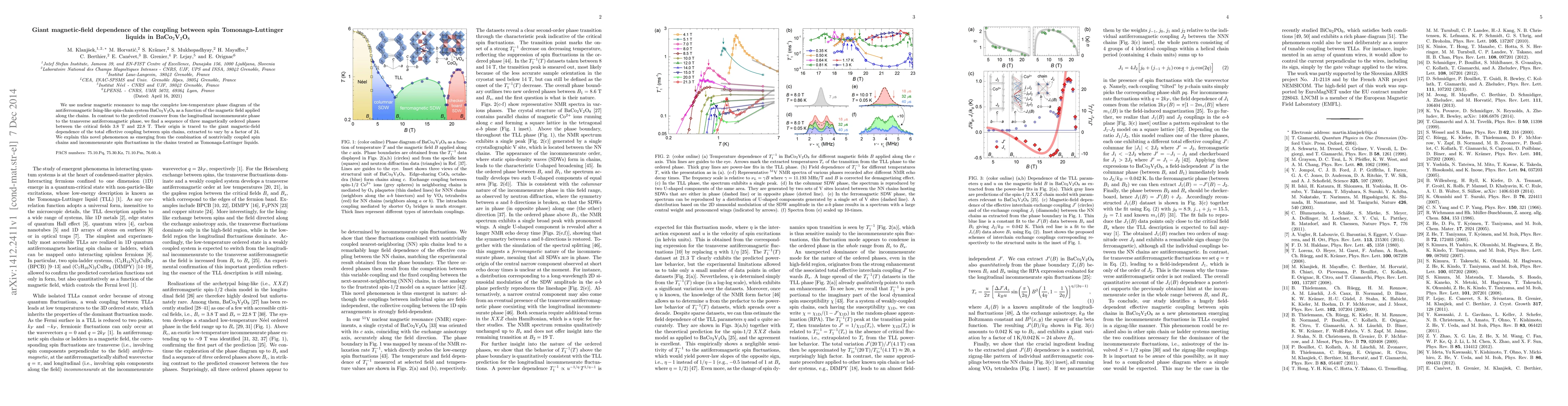 This paper investigates the magnetic-field dependence of spin coupling in BaCo2V2O8 using nuclear magnetic resonance, revealing a sequence of three magnetically ordered phases instead of the predicted crossover. The study finds a giant variation in effective coupling between spin chains, attributed to the interplay of coupled spin chains and incommensurate spin fluctuations modeled as Tomonaga-Luttinger liquids.