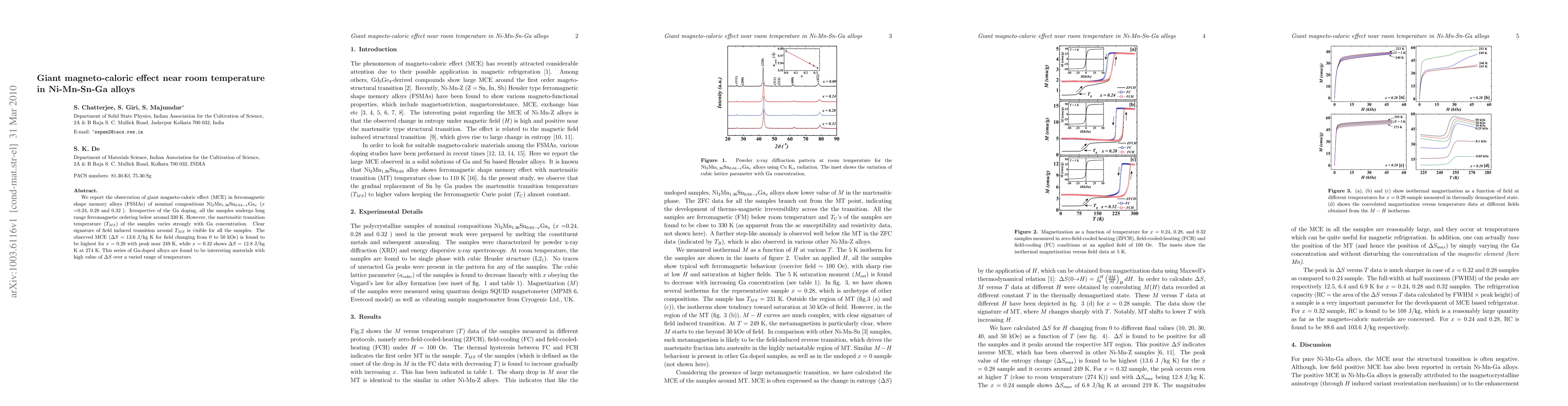 This paper reports a significant magneto-caloric effect in Ni-Mn-Sn-Ga ferromagnetic shape memory alloys, with the highest MCE observed in the composition Ni$_2$Mn$_{1.36}$Sn$_{0.32}$Ga$_{0.28}$ near 249 K. The study highlights the potential of these alloys for applications in magnetic cooling technologies.