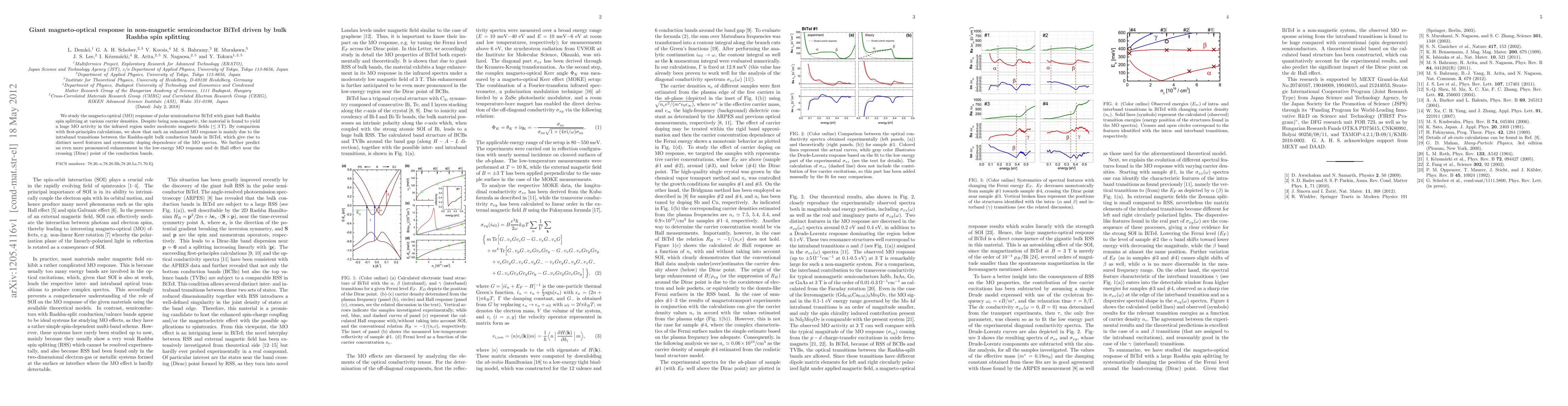 This paper investigates the magneto-optical response in non-magnetic semiconductor BiTeI, revealing a giant optical activity in the infrared region due to bulk Rashba spin splitting. The study attributes the enhanced response to intraband transitions between the split conduction bands, predicting further enhancements near the Dirac point.