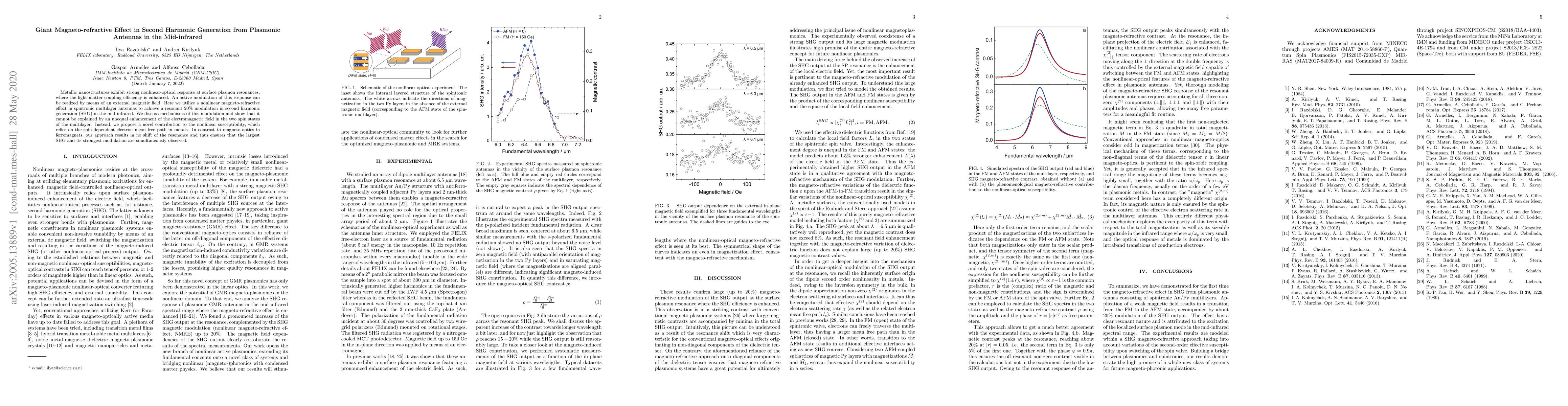 Metallic nanostructures exhibit strong nonlinear-optical response at surface plasmon resonances, where the light-matter coupling efficiency is enhanced. An active modulation of this response can be realized by means of an external magnetic field. Here we utilize a nonlinear magneto-refractive effect in spintronic multilayer antennas to achieve a resonant 20\% modulation in second harmonic generation (SHG) in the mid-infrared. We discuss mechanisms of this modulation and show that it cannot be explained by an unequal enhancement of the electromagnetic field in the two spin states of the multilayer. Instead, we propose a novel contribution to the nonlinear susceptibility, which relies on the spin-dependent electron mean free path in metals. In contrast to magneto-optics in ferromagnets, our approach results in no shift of the resonance and thus ensures that the largest SHG and its strongest modulation are simultaneously observed.