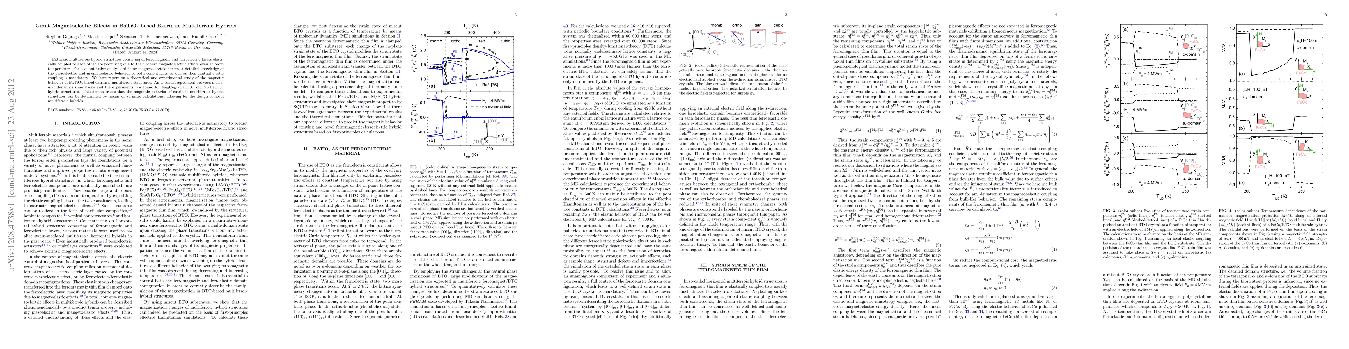 Extrinsic multiferroic hybrid structures consisting of ferromagnetic and ferroelectric layers elastically coupled to each other are promising due to their robust magnetoelectric effects even at room temperature. For a quantitative analysis of these magnetoelectric effects, a detailed knowledge of the piezoelectric and magnetoelastic behavior of both constituents as well as their mutual elastic coupling is mandatory. We here report on a theoretical and experimental study of the magnetic behavior of BaTiO3-based extrinsic multiferroic structures. An excellent agreement between molecular dynamics simulations and the experiments was found for Fe50Co50/BaTiO3 and Ni/BaTiO3 hybrid structures. This demonstrates that the magnetic behavior of extrinsic multiferroic hybrid structures can be determined by means of ab-initio calculations, allowing for the design of novel multiferroic hybrids.