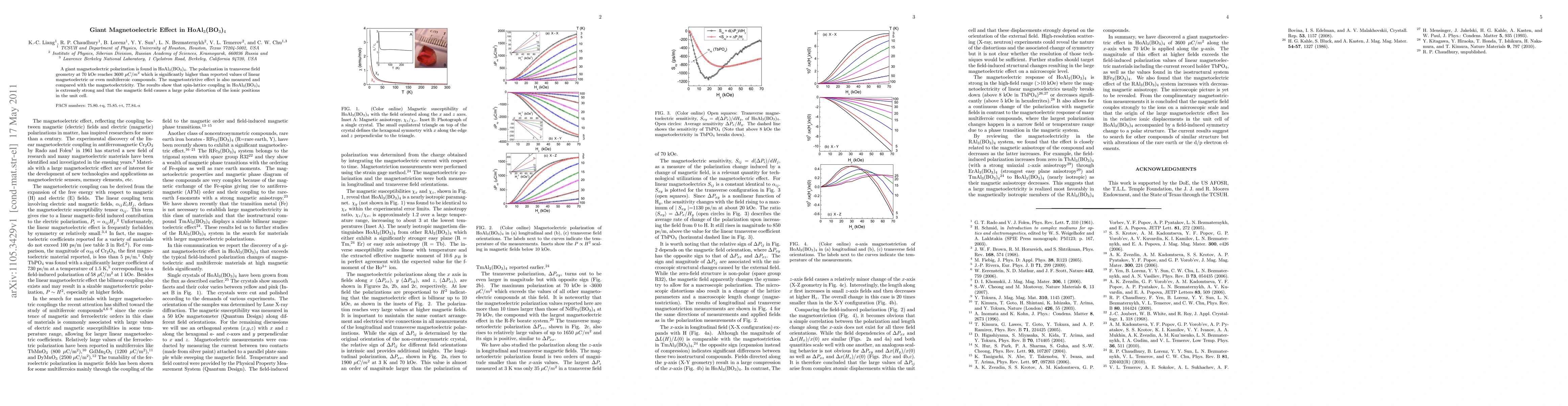 A giant magnetoelectric polarization is found in HoAl$_3$(BO$_3$)$_4$. The polarization in transverse field geometry at 70 kOe reaches 3600 $\mu C/m^2$ which is significantly higher than reported values of linear magnetoelectric or even multiferroic compounds. The magnetostrictive effect is also measured and compared with the magnetoelectricity. The results show that spin-lattice coupling in HoAl$_3$(BO$_3$)$_4$ is extremely strong and that the magnetic field causes a large polar distortion of the ionic positions in the unit cell.