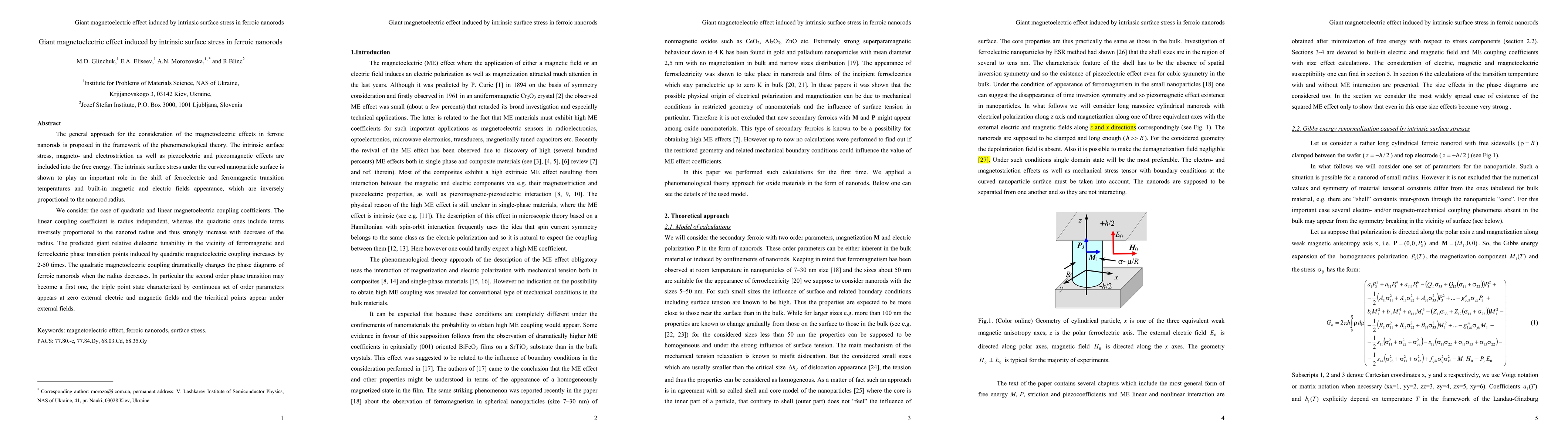 This paper proposes a phenomenological theory to analyze magnetoelectric effects in ferroic nanorods, emphasizing the role of intrinsic surface stress. It predicts significant enhancements in dielectric tunability and phase transitions due to quadratic magnetoelectric coupling, especially as the nanorod radius decreases.