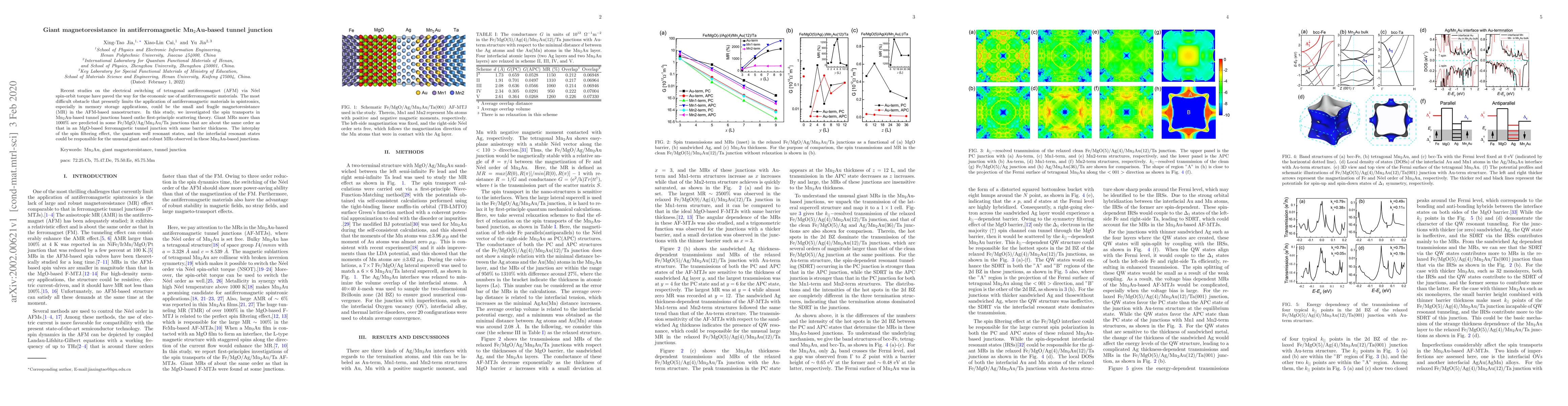 Recent studies on the electrical switching of tetragonal antiferromagnet (AFM) via N{\'e}el spin-orbit torque have paved the way for the economic use of antiferromagnetic materials. The most difficult obstacle that presently limits the application of antiferromagnetic materials in spintronics, especially in memory storage applications, could be the small and fragile magnetoresistance (MR) in the AFM-based nanostructure. In this study, we investigated the spin transports in Mn$_2$Au-based tunnel junctions based onthe first-principle scattering theory. Giant MRs more than $1000\%$ are predicted in some Fe/MgO/Ag/Mn$_2$Au/Ta junctions that are about the same order as that in an MgO-based ferromagnetic tunnel junction with same barrier thickness. The interplay of the spin filtering effect, the quantum well resonant states, and the interfacial resonant states could be responsible for the unusual giant and robust MRs observed in these Mn$_2$Au-based junctions.