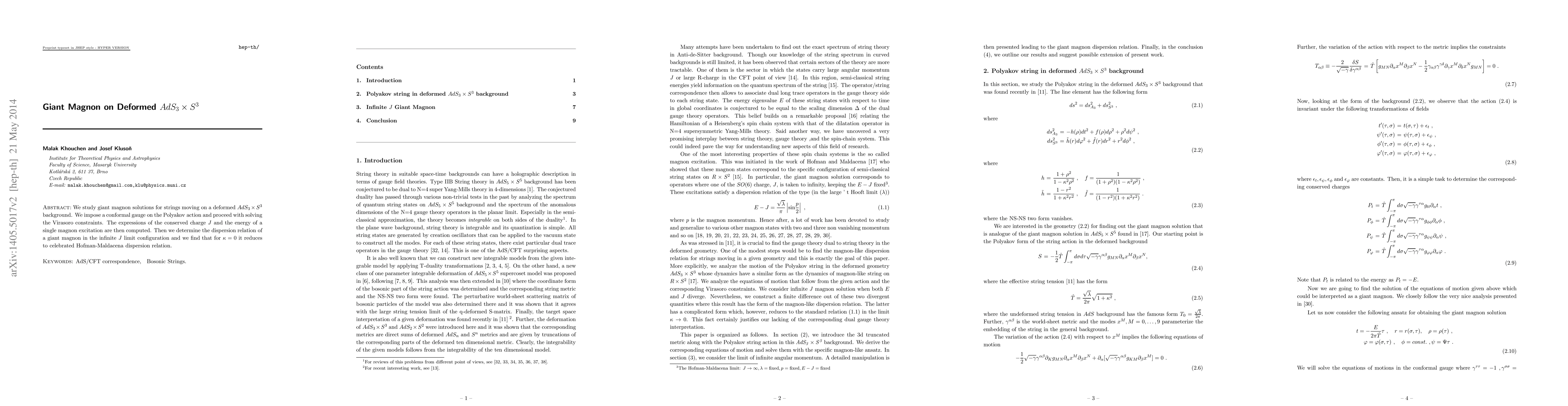 Researchers studied giant magnon solutions on a deformed AdS(3)xS(3) background, finding that the dispersion relation reduces to the Hofman-Maldacena relation as the deformation parameter approaches zero.