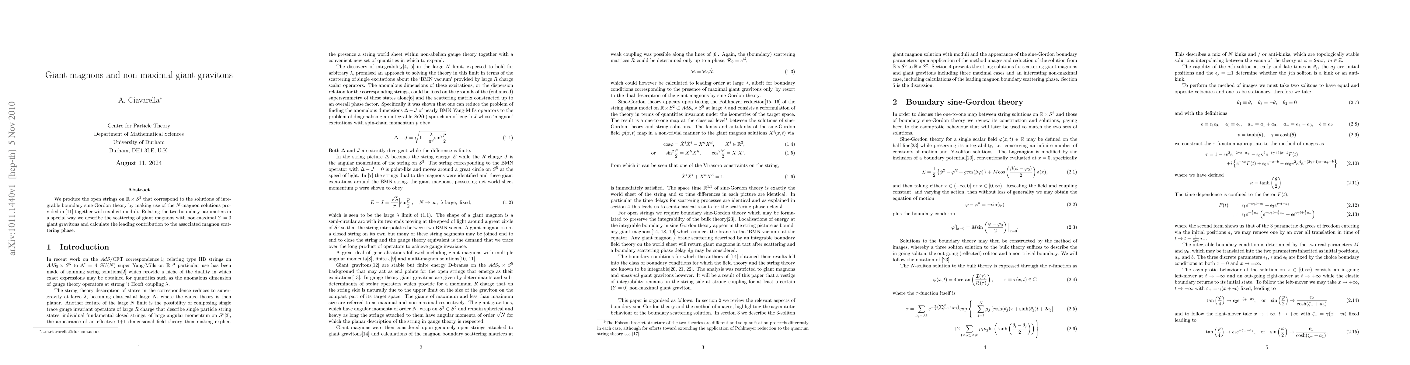 We produce the open strings on $\mathbb{R}\times S^{2}$ that correspond to the solutions of integrable boundary sine-Gordon theory by making use of the $N$-magnon solutions provided in \cite{KPV} together with explicit moduli. Relating the two boundary parameters in a special way we describe the scattering of giant magnons with non-maximal $Y=0$ giant gravitons and calculate the leading contribution to the associated magnon scattering phase.