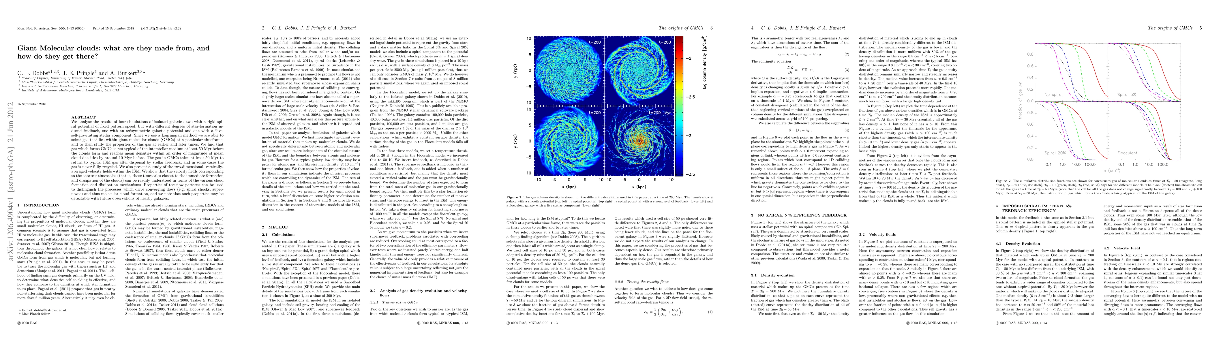 We analyse the results of four simulations of isolated galaxies: two with a rigid spiral potential of fixed pattern speed, but with different degrees of star-formation induced feedback, one with an axisymmetric galactic potential and one with a `live' self-gravitating stellar component. Since we use a Lagrangian method we are able to select gas that lies within giant molecular clouds (GMCs) at a particular timeframe, and to then study the properties of this gas at earlier and later times. We find that gas which forms GMCs is not typical of the interstellar medium at least 50 Myr before the clouds form and reaches mean densities within an order of magnitude of mean cloud densities by around 10 Myr before. The gas in GMCs takes at least 50 Myr to return to typical ISM gas after dispersal by stellar feedback, and in some cases the gas is never fully recycled. We also present a study of the two-dimensional, vertically-averaged velocity fields within the ISM. We show that the velocity fields corresponding to the shortest timescales (that is, those timescales closest to the immediate formation and dissipation of the clouds) can be readily understood in terms of the various cloud formation and dissipation mechanisms. Properties of the flow patterns can be used to distinguish the processes which drive converging flows (e.g.\ spiral shocks, supernovae) and thus molecular cloud formation, and we note that such properties may be detectable with future observations of nearby galaxies.