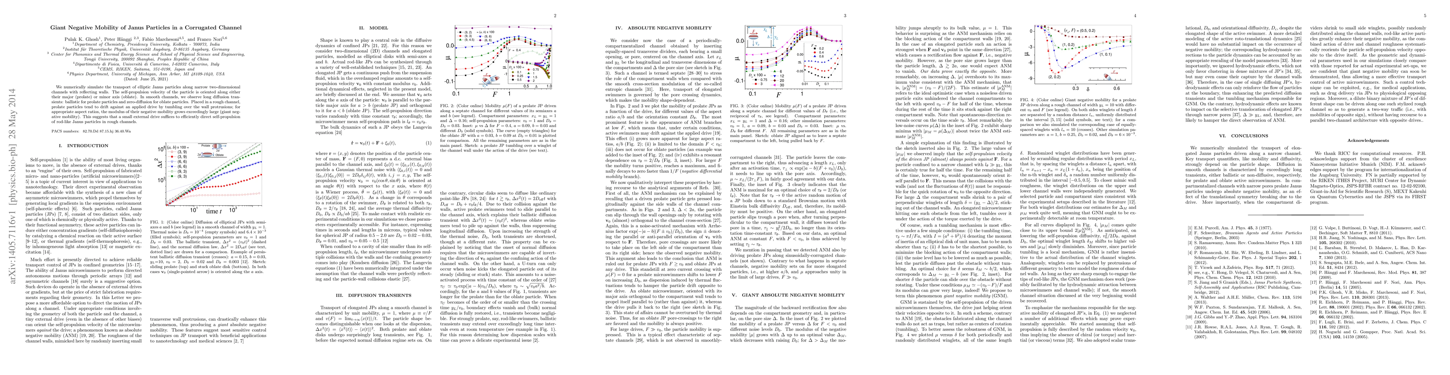 We numerically simulate the transport of elliptic Janus particles along narrow two-dimensional channels with reflecting walls. The self-propulsion velocity of the particle is oriented along either their major (prolate) or minor axis (oblate). In smooth channels, we observe long diffusion transients: ballistic for prolate particles and zero-diffusion for oblate particles. Placed in a rough channel, prolate particles tend to drift against an applied drive by tumbling over the wall protrusions; for appropriate aspect ratios, the modulus of their negative mobility grows exceedingly large (giant negative mobility). This suggests that a small external drive suffices to efficiently direct self-propulsion of rod-like Janus particles in rough channels.