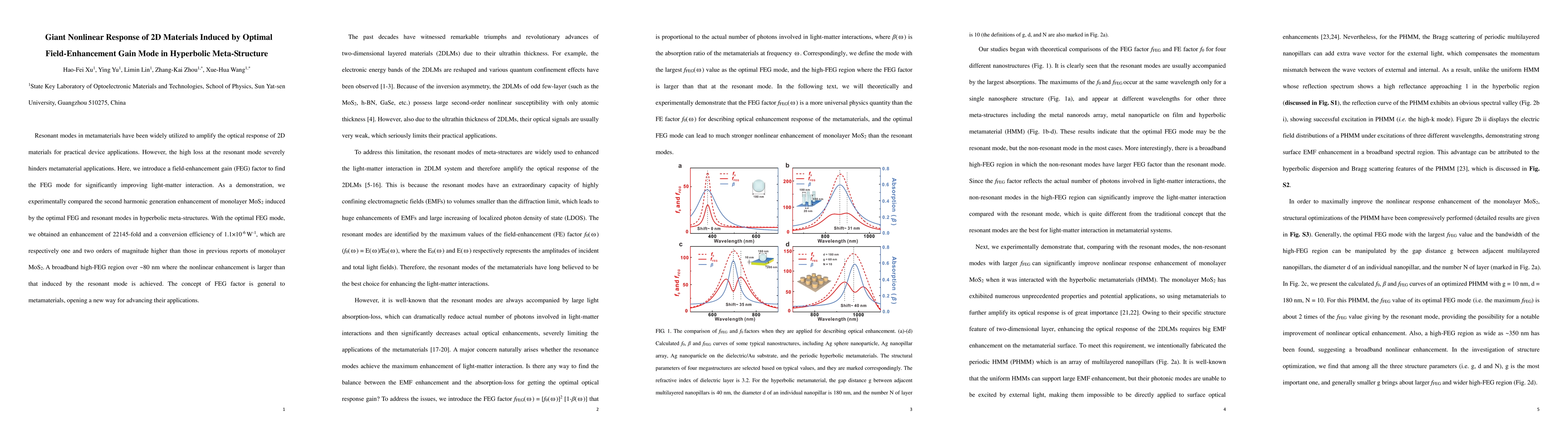 Researchers developed a new method to enhance nonlinear response in 2D materials, achieving an unprecedented 22,145-fold increase in second harmonic generation efficiency through optimal field-enhancement gain mode.