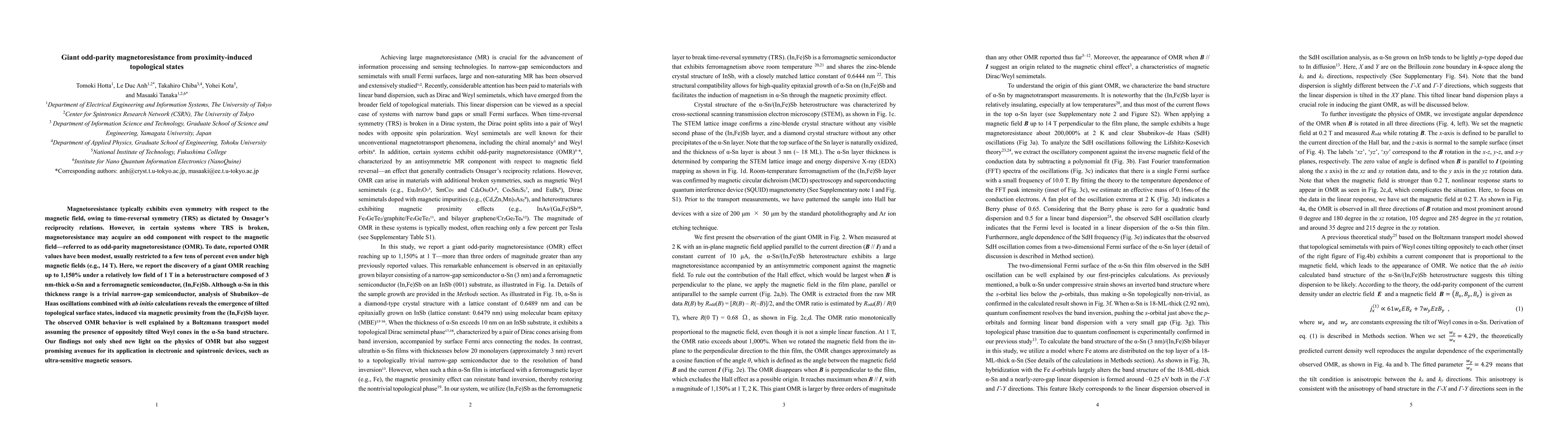 The paper presents a detailed analysis of a novel giant odd-parity magnetoresistance effect in a heterostructure of alpha Sn and (In,Fe)Sb, explaining it through a Boltzmann transport model.
