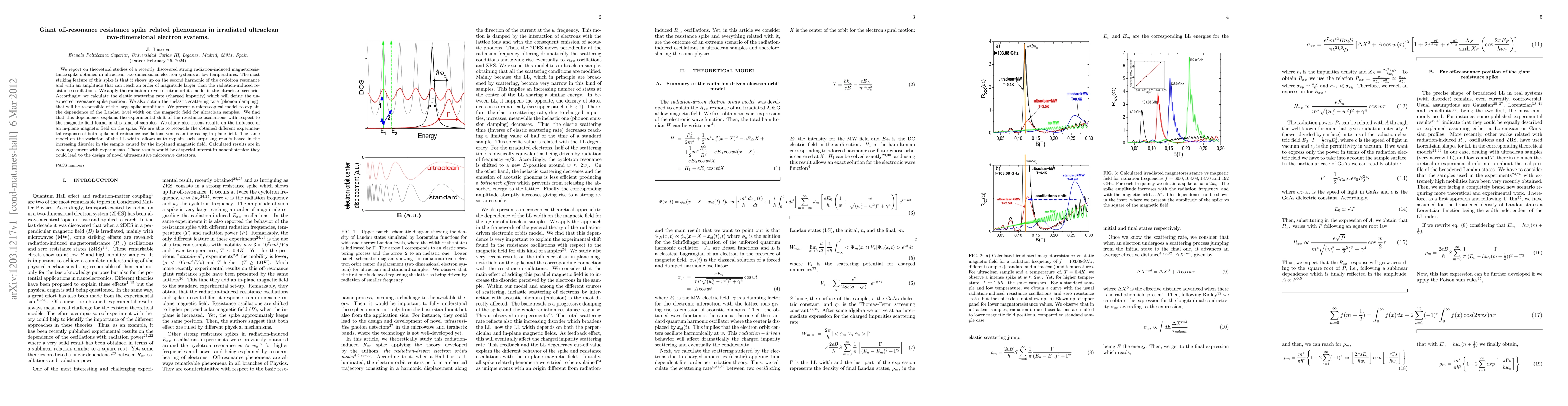 We report on theoretical studies of a recently discovered strong radiation-induced magnetoresistance spike obtained in ultraclean two-dimensional electron systems at low temperatures. The most striking feature of this spike is that it shows up on the second harmonic of the cyclotron resonance and with an amplitude that can reach an order of magnitude larger than the radiation-induced resistance oscillations. We apply the radiation-driven electron orbits model in the ultraclean scenario. Accordingly, we calculate the elastic scattering rate (charged impurity) which will define the unexpected resonance spike position. We also obtain the inelastic scattering rate (phonon damping), that will be responsible of the large spike amplitude. We present a microscopical model to explain the dependence of the Landau level width on the magnetic field for ultraclean samples. We find that this dependence explains the experimental shift of the resistance oscillations with respect to the magnetic field found in this kind of samples. We study also recent results on the influence of an in-plane magnetic field on the spike. We are able to reconcile the obtained different experimental response of both spike and resistance oscillations versus an increasing in-plane field. The same model on the variation of the LL width, allows us to explain such surprising results based in the increasing disorder in the sample caused by the in-planed magnetic field. Calculated results are in good agreement with experiments. These results would be of special interest in nanophotonics; they could lead to the design of novel ultrasensitive microwave detectors.
