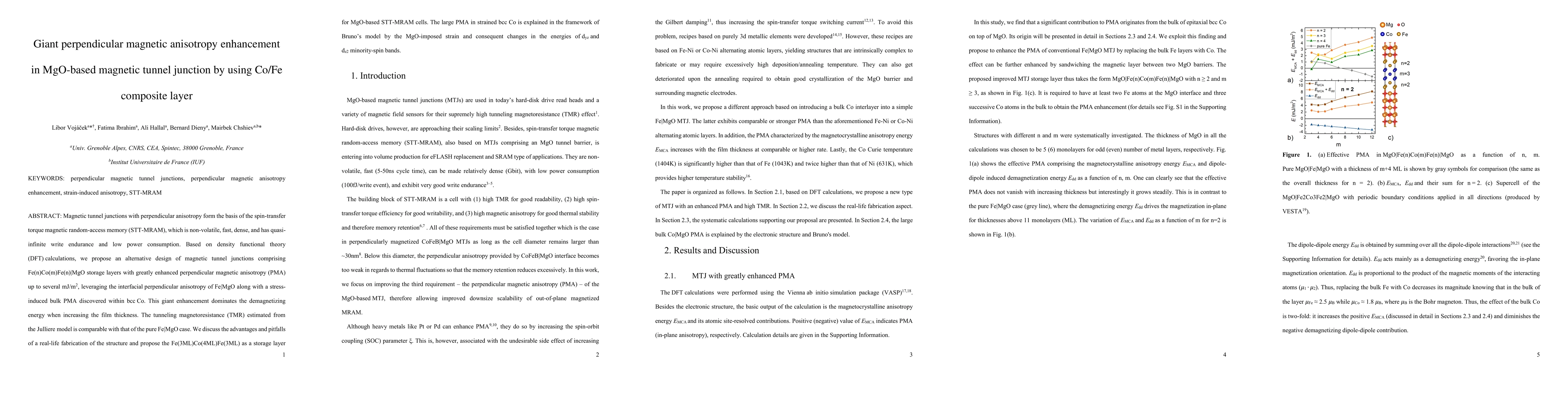 This research proposes a design for MgO-based magnetic tunnel junctions using Fe(n)Co(m)Fe(n) layers to achieve significantly enhanced perpendicular magnetic anisotropy (PMA) through interfacial and stress-induced mechanisms, potentially improving STT-MRAM performance. The Fe(3ML)Co(4ML)Fe(3ML) configuration is suggested as optimal for practical applications.