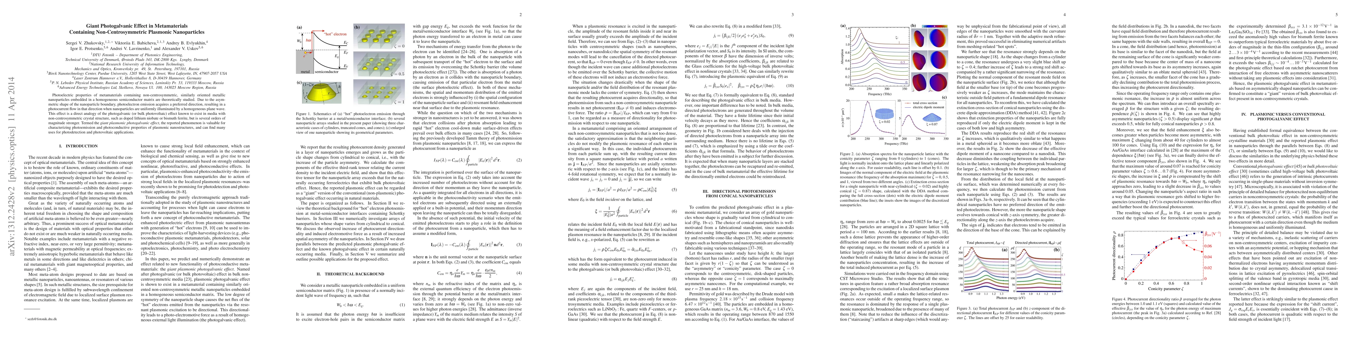This paper investigates the giant photogalvanic effect in metamaterials with non-centrosymmetric plasmonic nanoparticles, revealing a significantly stronger photocurrent flow compared to traditional materials. This effect holds potential for advanced photodetection and photovoltaic applications.