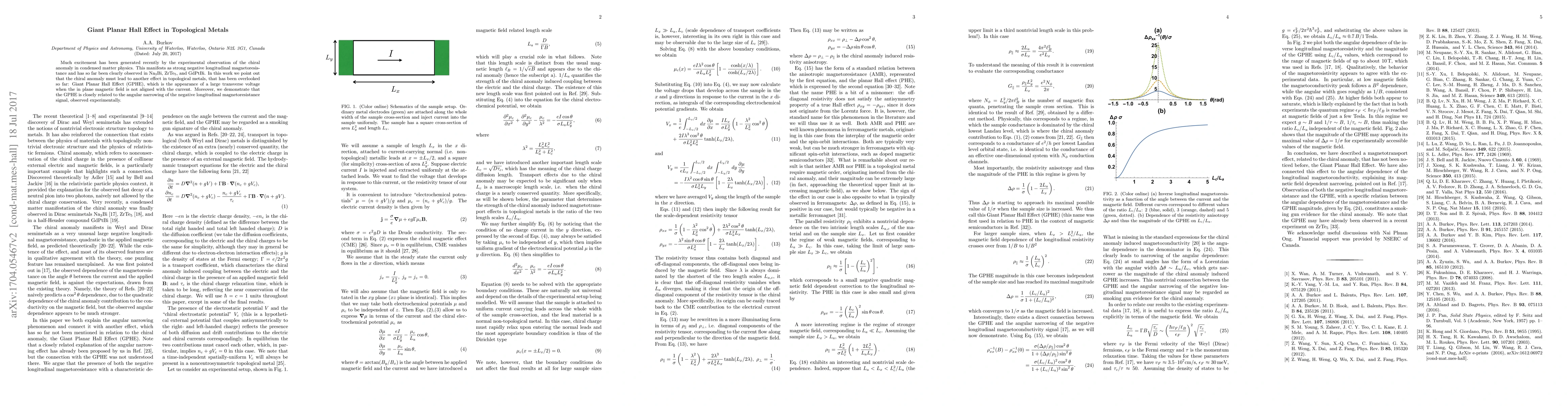 Researchers discover a new effect in topological metals known as Giant Planar Hall Effect, which appears when the in-plane magnetic field is not aligned with the current, closely related to the angular narrowing of negative longitudinal magnetoresistance signal.