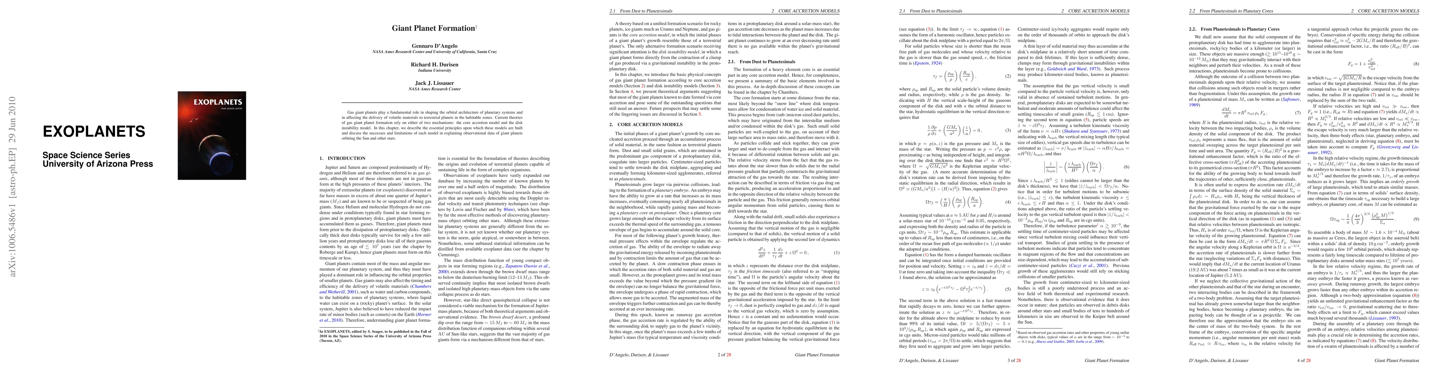 This paper reviews the core accretion and disk instability models for gas giant planet formation, highlighting their principles and evaluating their effectiveness in explaining observational data of giant planets around the Sun and other stars. It identifies both models' successes and limitations in understanding planetary system architecture.