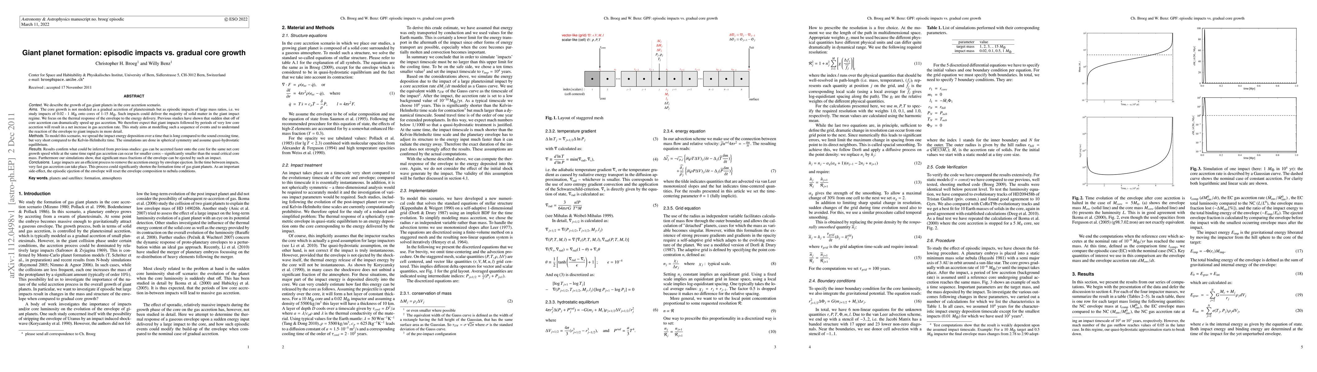 Research suggests that giant planet formation can occur through episodic impacts, delivering a majority of solid matter, which accelerates gas accretion rates around smaller cores.