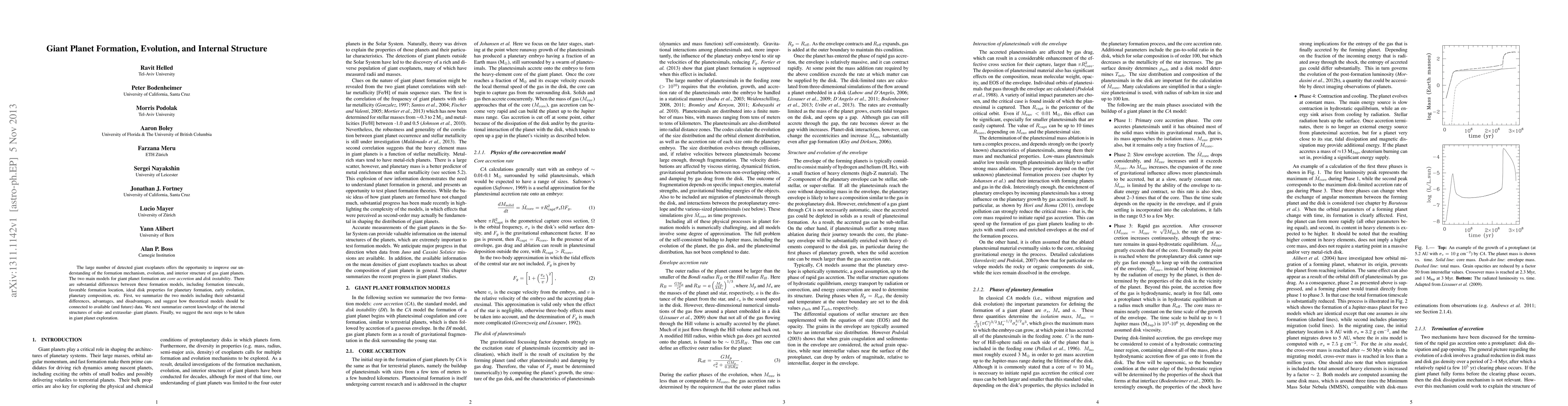 The large number of detected giant exoplanets offers the opportunity to improve our understanding of the formation mechanism, evolution, and interior structure of gas giant planets. The two main models for giant planet formation are core accretion and disk instability. There are substantial differences between these formation models, including formation timescale, favorable formation location, ideal disk properties for planetary formation, early evolution, planetary composition, etc. First, we summarize the two models including their substantial differences, advantages, and disadvantages, and suggest how theoretical models should be connected to available (and future) data. We next summarize current knowledge of the internal structures of solar- and extrasolar- giant planets. Finally, we suggest the next steps to be taken in giant planet exploration.