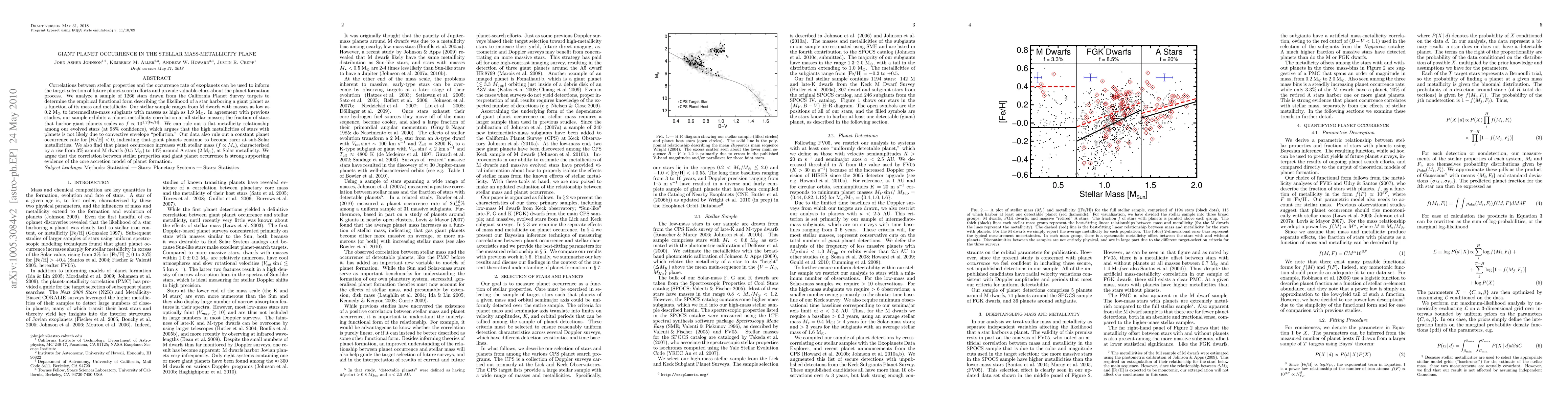 This study analyzes 1194 stars to determine the likelihood of giant planet occurrence as a function of stellar mass and metallicity, finding a strong planet-metallicity correlation and a rise in planet occurrence with increasing stellar mass. The results support the core accretion model of planet formation.