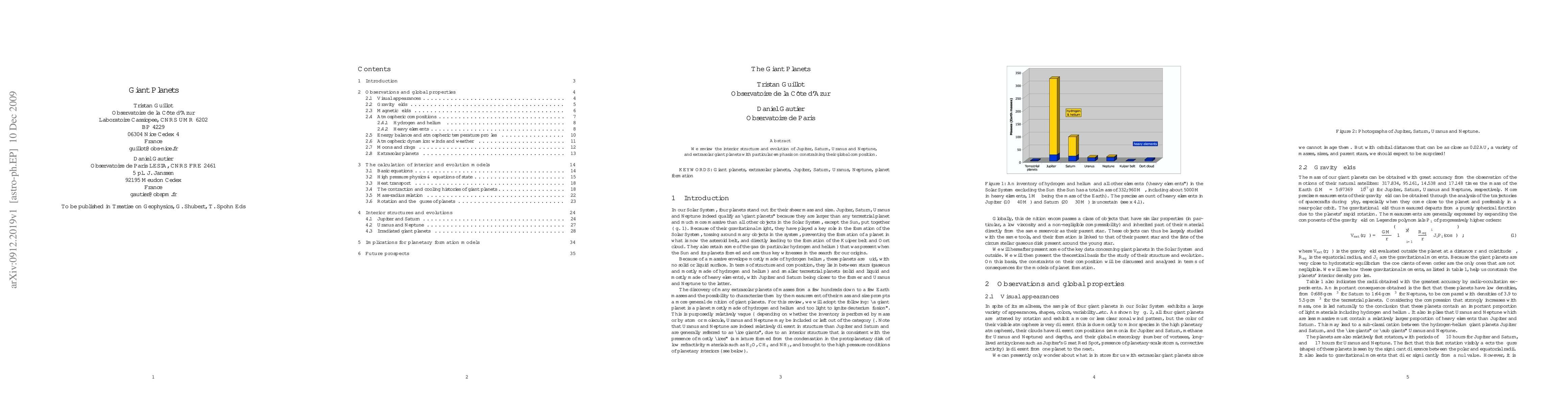 We review the interior structure and evolution of Jupiter, Saturn, Uranus and Neptune, and extrasolar giant planets with particular emphasis on constraining their global composition.