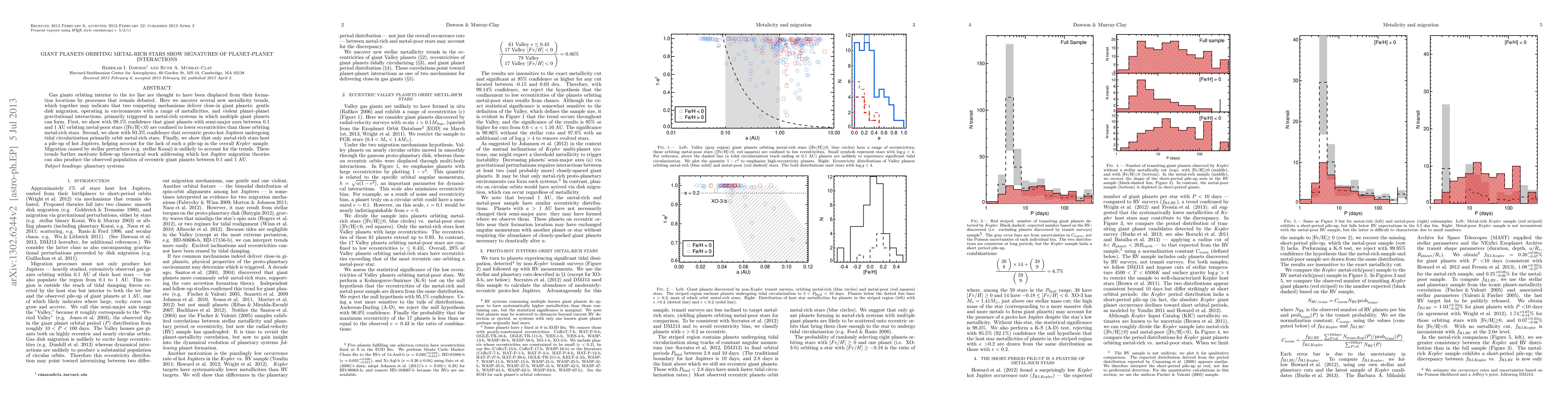 This research reveals that giant planets orbiting metal-rich stars exhibit signatures of planet-planet interactions, suggesting that both gentle disk migration and violent gravitational interactions contribute to their formation. The study finds that metal-poor stars host less eccentric giant planets compared to metal-rich stars, indicating different migration mechanisms.