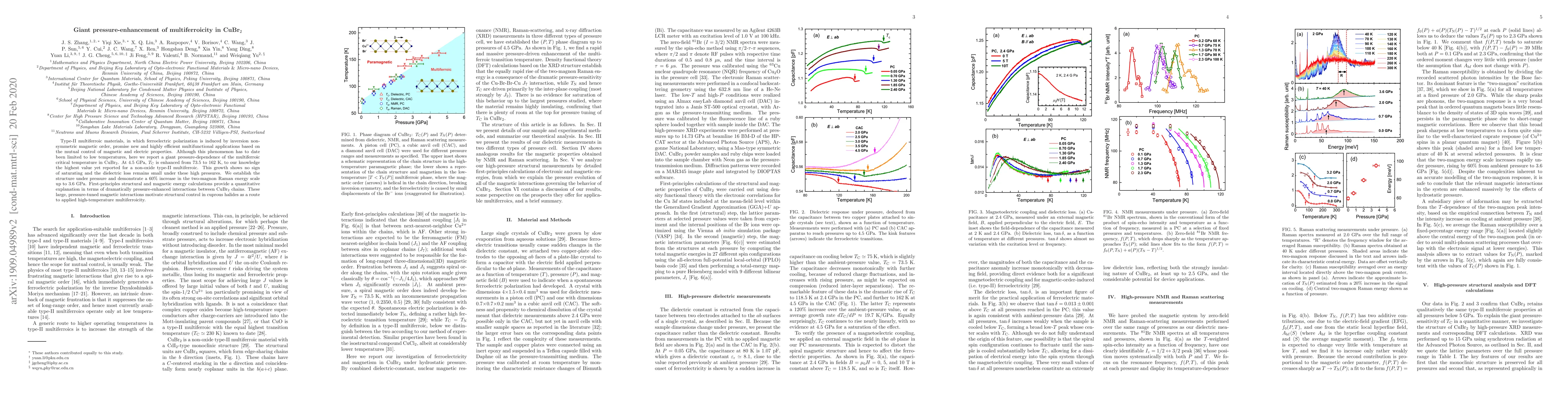 Type-II multiferroic materials, in which ferroelectric polarization is induced by inversion non-symmetric magnetic order, promise new and highly efficient multifunctional applications based on the mutual control of magnetic and electric properties. Although this phenomenon has to date been limited to low temperatures, here we report a giant pressure-dependence of the multiferroic critical temperature in CuBr$_2$. At 4.5 GPa, $T_\mathrm{C}$ is enhanced from 73.5 to 162 K, to our knowledge the highest value yet reported for a non-oxide type-II multiferroic. This growth shows no sign of saturating and the dielectric loss remains small under these high pressures. We establish the structure under pressure and demonstrate a 60\% increase in the two-magnon Raman energy scale up to 3.6 GPa. First-principles structural and magnetic energy calculations provide a quantitative explanation in terms of dramatically pressure-enhanced interactions between CuBr$_2$ chains. These large, pressure-tuned magnetic interactions motivate structural control in cuprous halides as a route to applied high-temperature multiferroicity.
