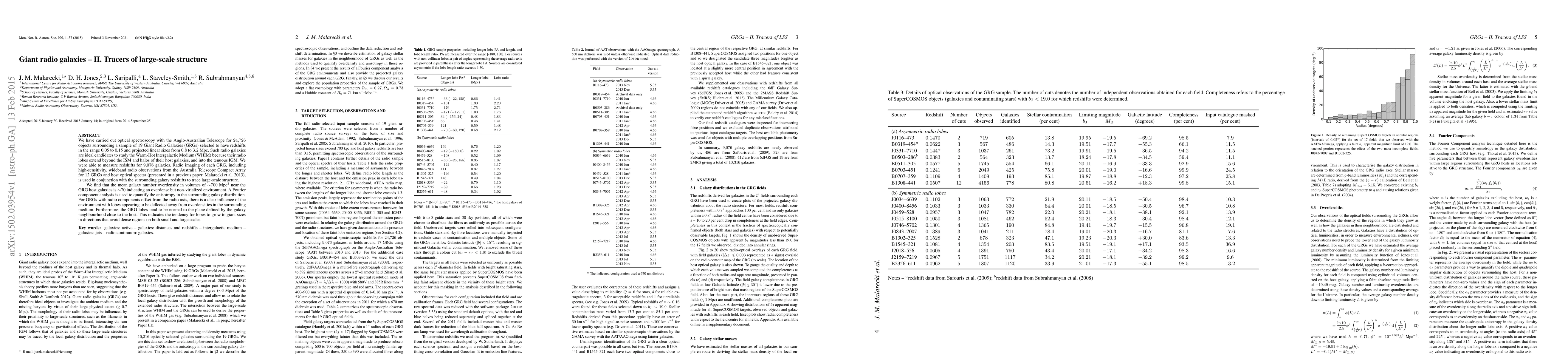 We have carried out optical spectroscopy with the Anglo-Australian Telescope for 24,726 objects surrounding a sample of 19 Giant Radio Galaxies (GRGs) selected to have redshifts in the range 0.05 to 0.15 and projected linear sizes from 0.8 to 3.2 Mpc. Such radio galaxies are ideal candidates to study the Warm-Hot Intergalactic Medium (WHIM) because their radio lobes extend beyond the ISM and halos of their host galaxies, and into the tenuous IGM. We were able to measure redshifts for 9,076 galaxies. Radio imaging of each GRG, including high-sensitivity, wideband radio observations from the Australia Telescope Compact Array for 12 GRGs and host optical spectra (presented in a previous paper, Malarecki et al. 2013), is used in conjunction with the surrounding galaxy redshifts to trace large-scale structure. We find that the mean galaxy number overdensity in volumes of ~700 Mpc$^3$ near the GRG host galaxies is ~70 indicating an overdense but non-virialized environment. A Fourier component analysis is used to quantify the anisotropy in the surrounding galaxy distribution. For GRGs with radio components offset from the radio axis, there is a clear influence of the environment with lobes appearing to be deflected away from overdensities in the surrounding medium. Furthermore, the GRG lobes tend to be normal to the plane defined by the galaxy neighbourhood close to the host. This indicates the tendency for lobes to grow to giant sizes in directions that avoid dense regions on both small and large scales.
