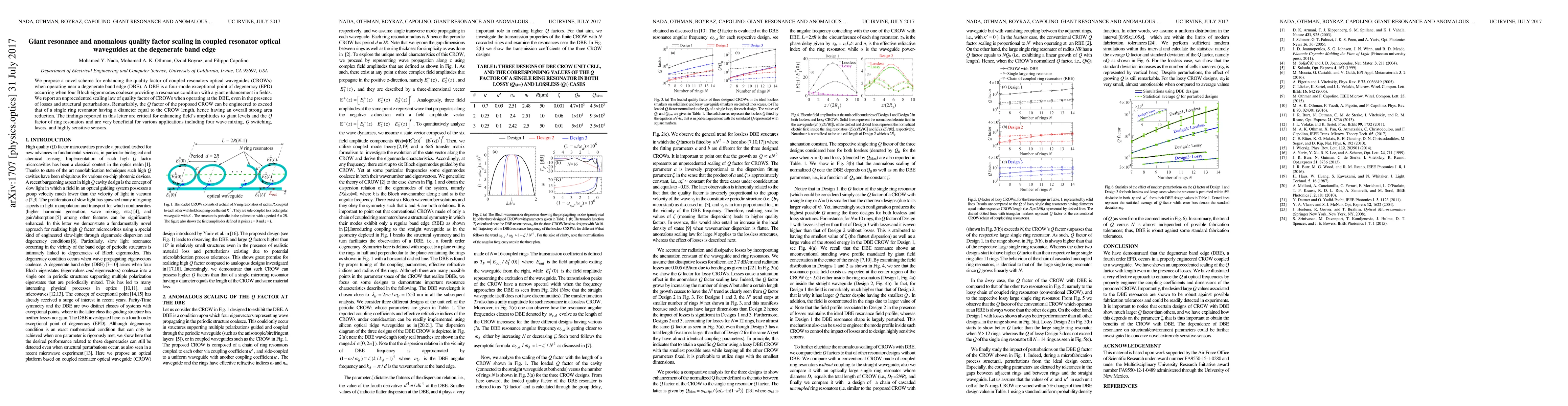 This paper proposes a method to significantly enhance the quality factor of coupled resonator optical waveguides (CROWs) near a degenerate band edge, where four modes coalesce. The study reveals an unprecedented scaling law for the quality factor, even with losses, and demonstrates that CROWs can achieve a higher Q factor than single ring resonators, leading to significant area reduction and potential applications in various optical technologies.