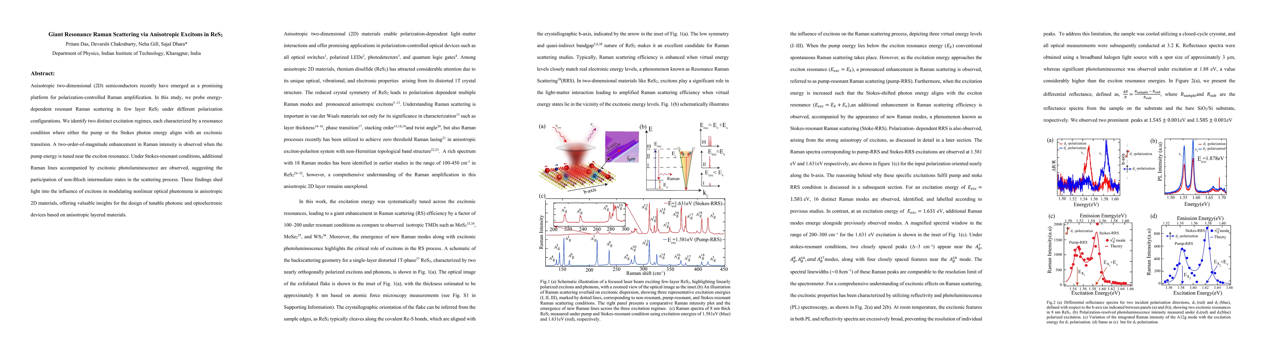 Demonstrated the significant enhancement of Raman scattering and the appearance of new Raman lines in anisotropic ReS2 due to excitonic resonances, providing a deeper understanding of nonlinear optical phenomena in 2D materials.
