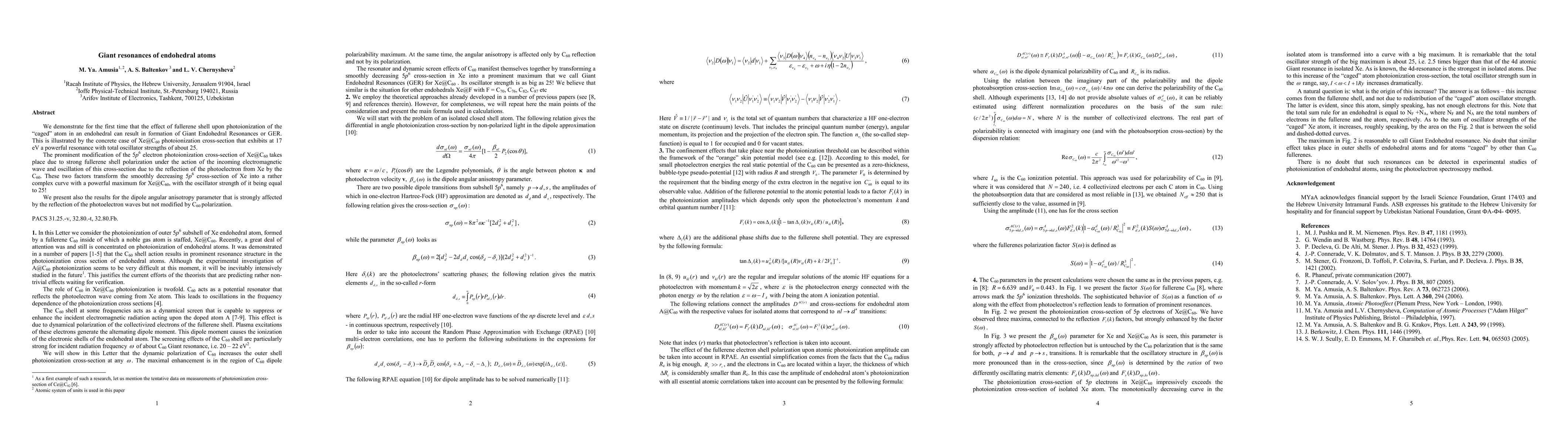 We demonstrate for the first time that the effect of fullerene shell upon photoionization of the "caged" atom in an endohedral can result in formation of Giant Endohedral Resonances or GER. This is illustrated by the concrete case of Xe@C60 photoionization cross-section that exhibits at 17 eV a powerful resonance with total oscillator strengths of about 25. The prominent modification of the 5p6 electron photoionization cross-section of Xe@C60 takes place due to strong fullerene shell polarization under the action of the incoming electromagnetic wave and oscillation of this cross-section due to the reflection of the photoelectron from Xe by the C60. These two factors transform the smoothly decreasing 5p6 cross-section of Xe into a rather complex curve with a powerful maximum for Xe@C60, with the oscillator strength being equal to 25! We present also the results for the dipole angular anisotropy parameter that is strongly affected by the reflection of the photoelectron waves but not modified by C60 polarization. The polarization of C60 is expressed via its total photoabsorption cross-section. The reflection of the photoelectron is taken into account in the frame of the so-called bubble potential that is a spherical delta-type potential.