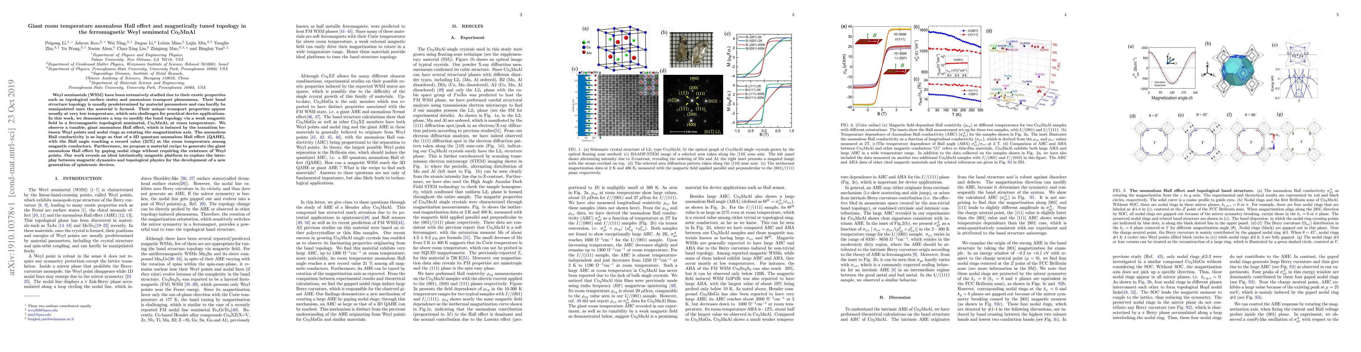 This paper reports on the giant room temperature anomalous Hall effect in the ferromagnetic Weyl semimetal Co2MnAl, which can be magnetically tuned by modifying its band topology. The study demonstrates that the anomalous Hall conductivity is comparable to that of a 3D quantum anomalous Hall effect, opening new possibilities for spintronic applications.
