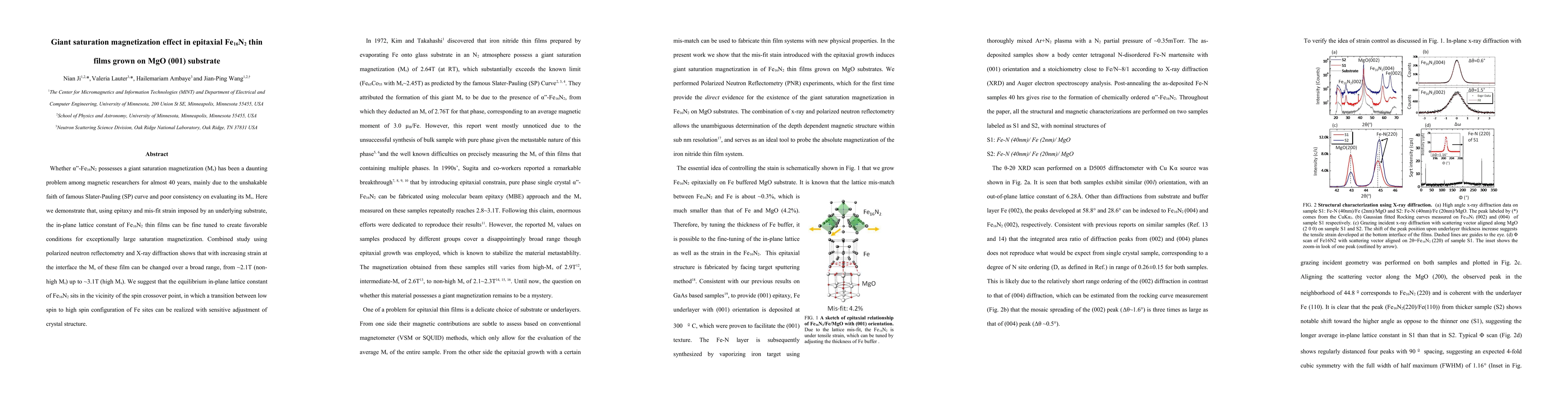 This paper demonstrates that epitaxial Fe16N2 thin films on MgO substrates exhibit a giant saturation magnetization effect due to lattice strain, achieving values up to 3.1T, challenging the traditional Slater-Pauling rule and highlighting the potential for tunable magnetic properties through crystal structure adjustments.