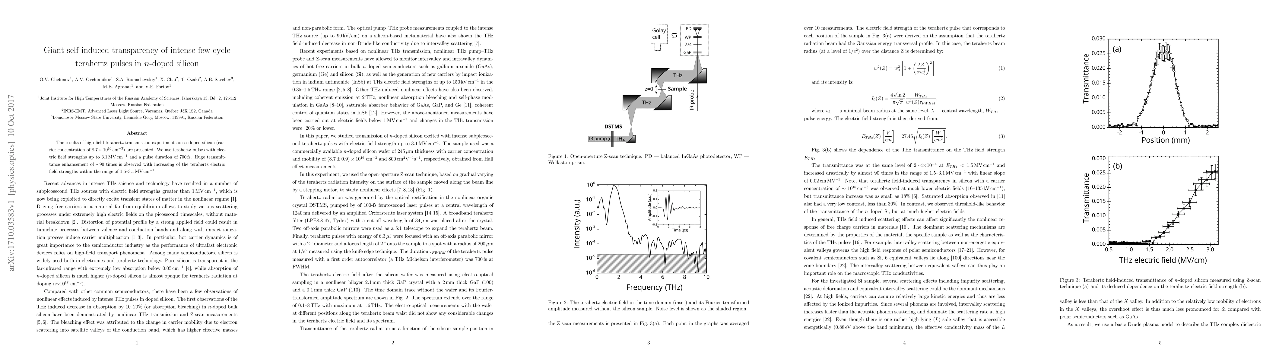 The results of high-field terahertz transmission experiments on n-doped silicon (carrier concentration of $8.7\times10^{16}$ cm$^{-3}$) are presented. We use terahertz pulses with electric field strengths up to 3.1 MV cm$^{-1}$ and a pulse duration of 700 fs. Huge transmittance enhancement of $\sim$90 times is observed with increasing of the terahertz electric field strengths within the range of 1.5--3.1 MV cm$^{-1}$.