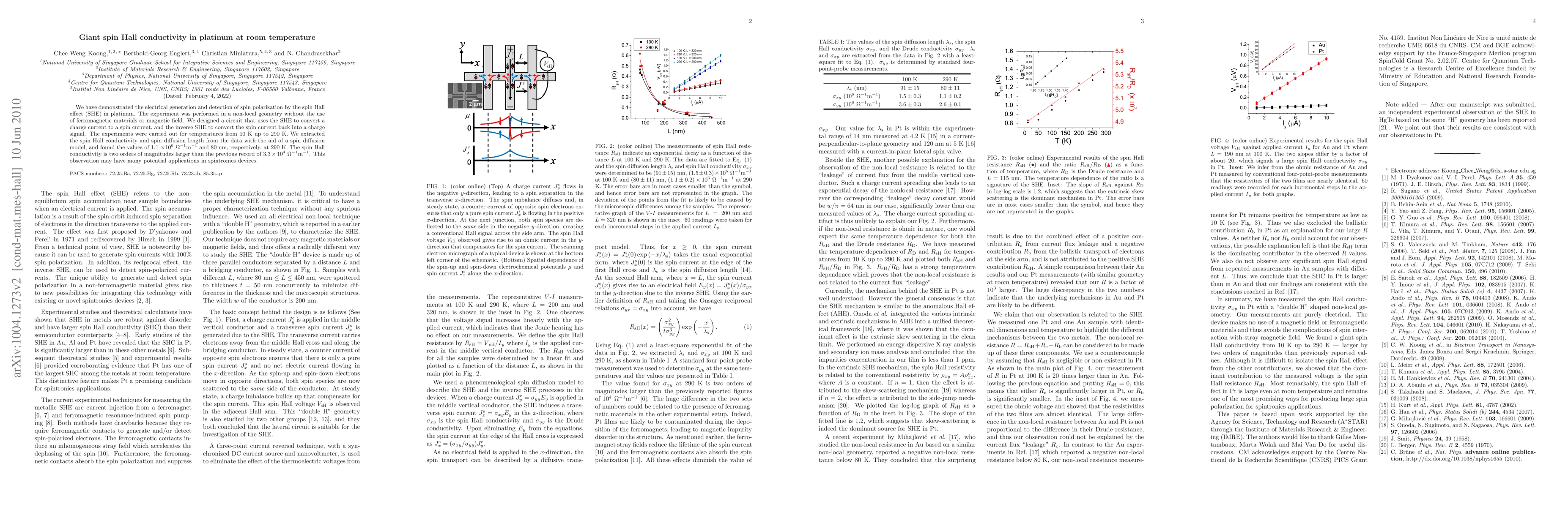 This paper demonstrates a significant enhancement in spin Hall conductivity in platinum at room temperature, achieving a value of 1.1 $\times 10^6$ $\Omega^{-1}$m$^{-1}$, which is two orders of magnitude higher than previous records. The study utilized a non-local geometry without ferromagnetic materials or magnetic fields, suggesting potential advancements in spintronics.
