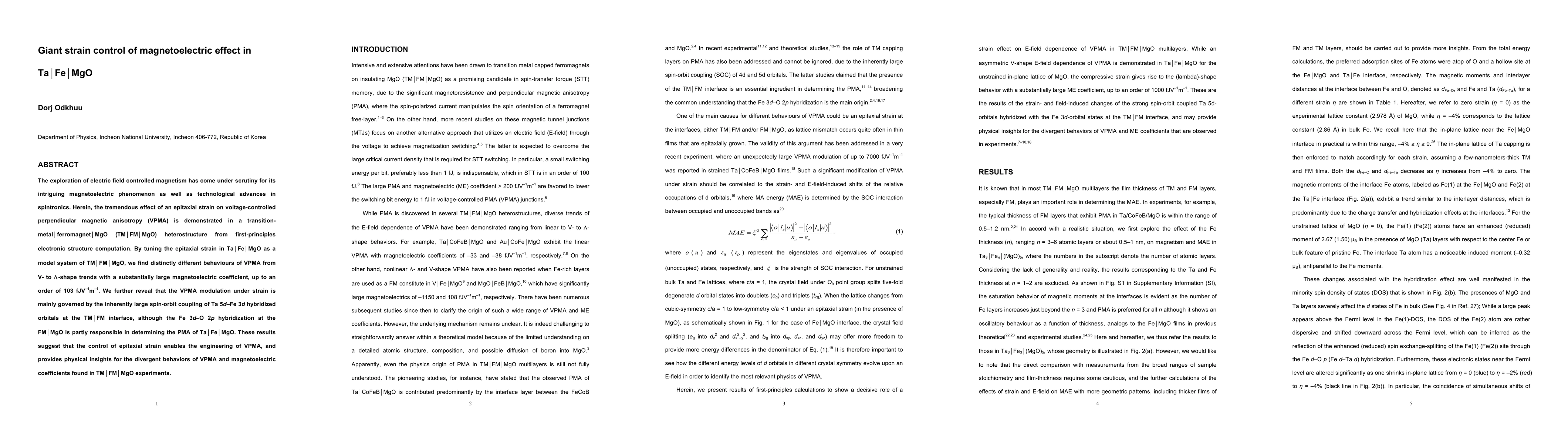 This paper demonstrates the significant impact of epitaxial strain on voltage-controlled perpendicular magnetic anisotropy (VPMA) in Ta/Fe/MgO heterostructures, revealing a large magnetoelectric coefficient up to 1000 fJ/Vm. The study highlights the role of spin-orbit coupling in Ta 5d-Fe 3d orbital hybridization at the interface in modulating VPMA.