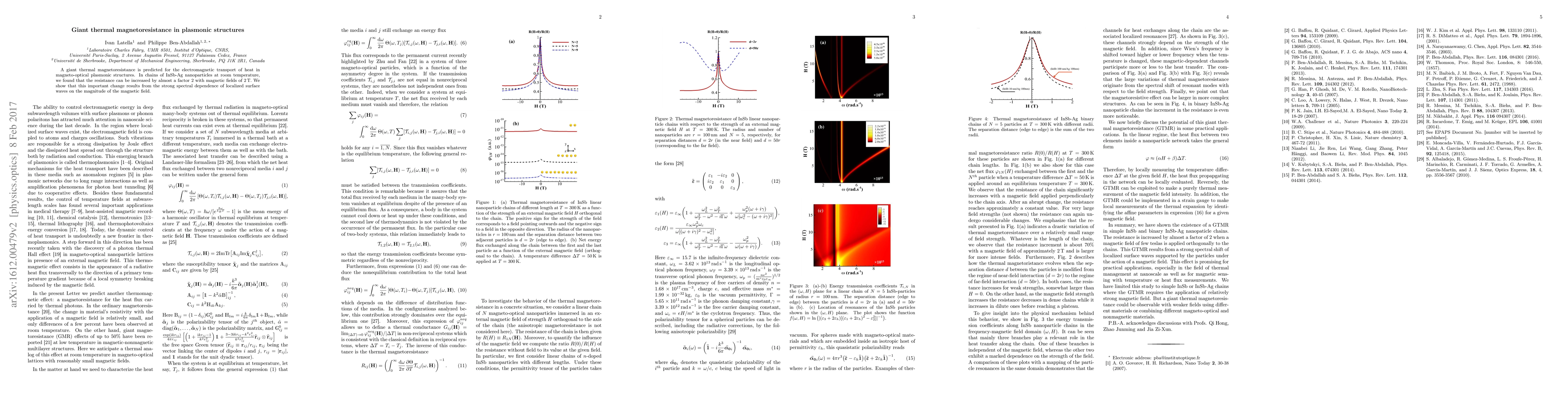 This research demonstrates a significant thermal magnetoresistance in magneto-optical plasmonic structures, particularly in InSb-Ag nanoparticle chains, where resistance nearly doubles under 2 T magnetic fields due to the magnetic field's strong effect on localized surface waves.