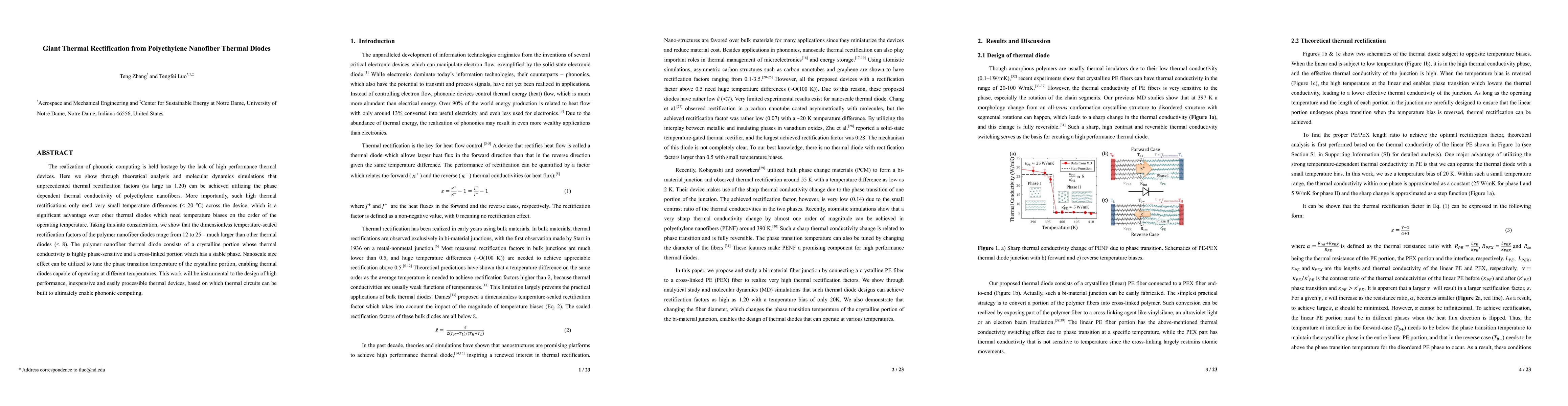 This paper demonstrates that polyethylene nanofibers can achieve significant thermal rectification factors (up to 1.20) using phase-dependent thermal conductivity, requiring only small temperature differences (< 20°C). These polymer nanofiber diodes outperform other thermal diodes, offering high temperature-scaled rectification factors (12 to 25) and enabling phononic computing.