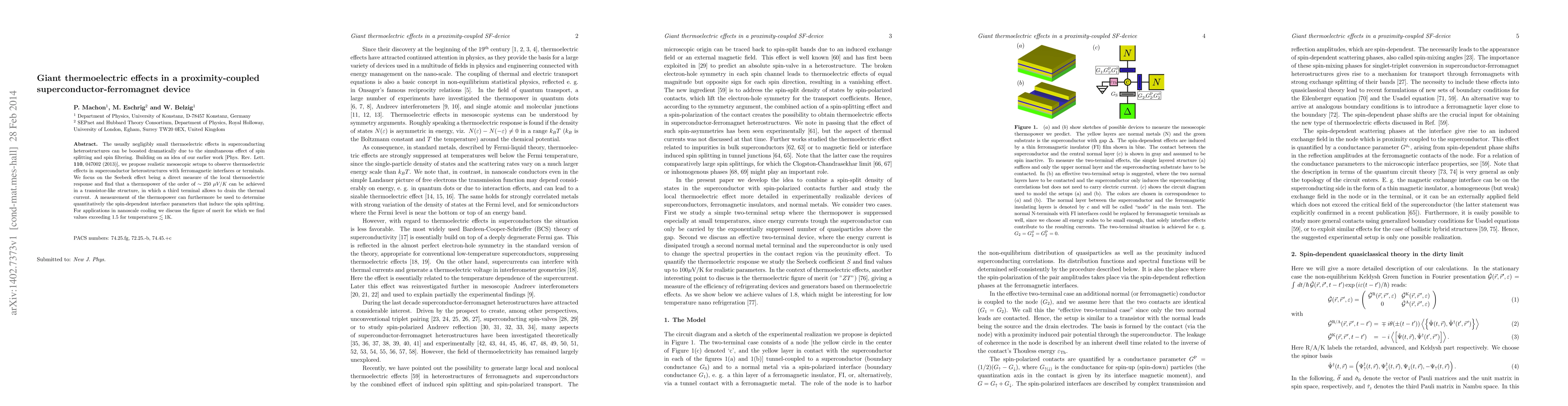 This paper proposes enhanced thermoelectric effects in superconductor-ferromagnet heterostructures due to spin splitting and spin filtering, achieving a thermopower of 200 µV/K. It suggests a transistor-like setup for observing these effects and discusses potential applications in nanoscale cooling.