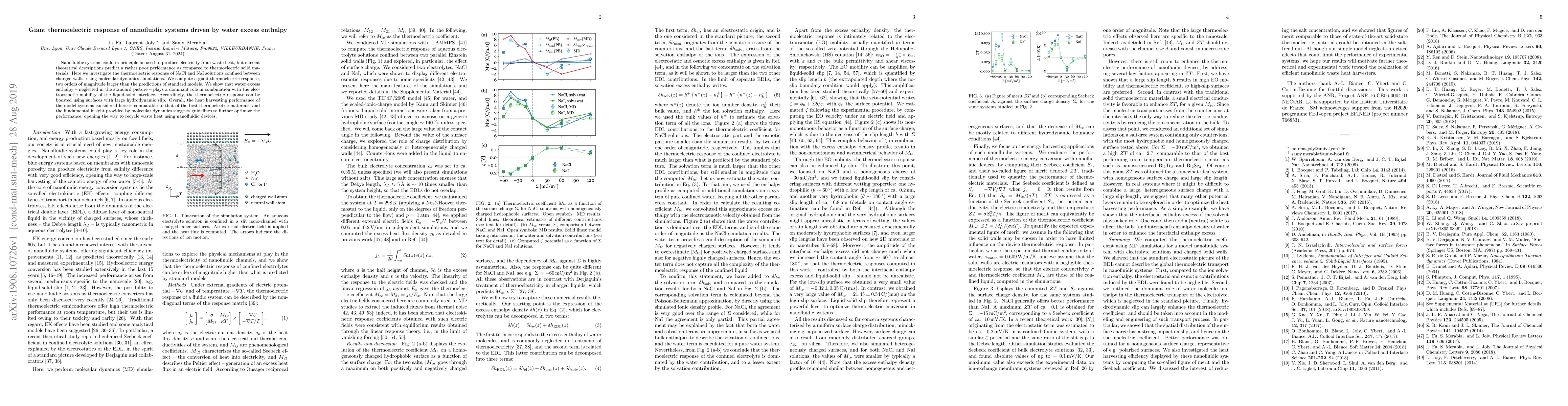 The study introduces a novel approach to modeling thermoelectric response in nanofluidic systems by considering water excess enthalpy and electroosmotic mobility, which significantly enhances the thermoelectric performance.
