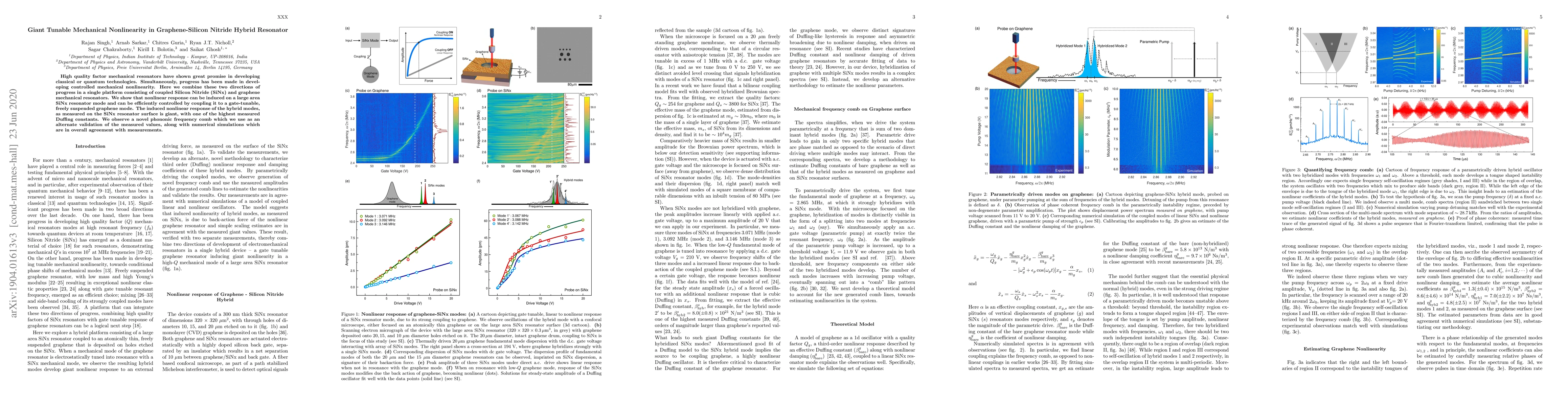 This paper demonstrates a hybrid graphene-silicon nitride resonator that exhibits giant tunable mechanical nonlinearity, achieved by coupling a gate-tunable graphene resonator to a large area silicon nitride resonator. The nonlinear response is validated through observed phononic frequency combs and numerical simulations.