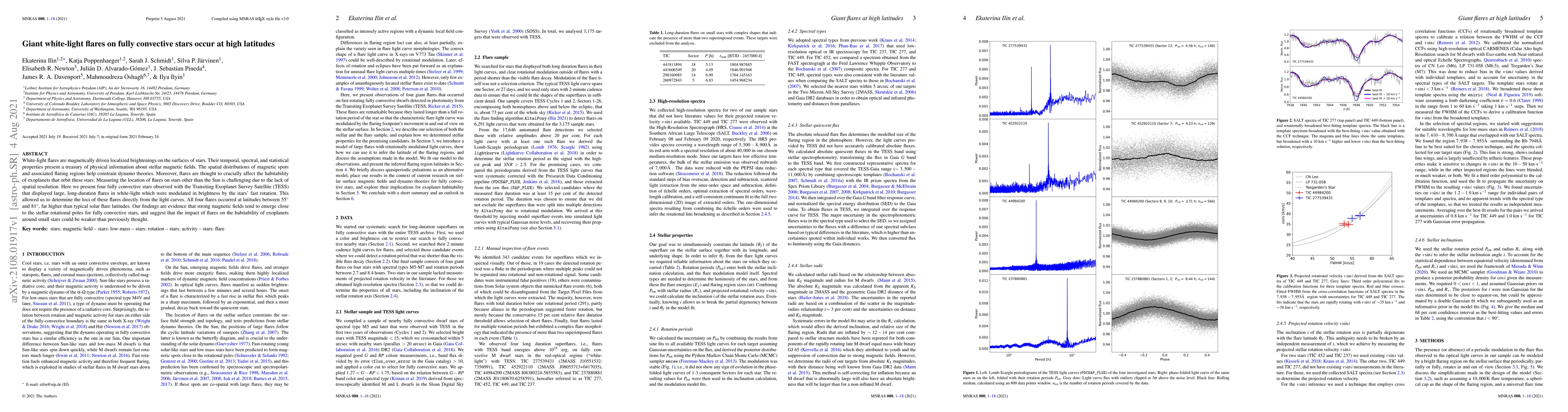 White-light flares are magnetically driven localized brightenings on the surfaces of stars. Their temporal, spectral, and statistical properties present a treasury of physical information about stellar magnetic fields. The spatial distributions of magnetic spots and associated flaring regions help constrain dynamo theories. Moreover, flares are thought to crucially affect the habitability of exoplanets that orbit these stars. Measuring the location of flares on stars other than the Sun is challenging due to the lack of spatial resolution. Here we present four fully convective stars observed with the Transiting Exoplanet Survey Satellite (TESS) that displayed large, long-duration flares in white-light which were modulated in brightness by the stars' fast rotation. This allowed us to determine the loci of these flares directly from the light curves. All four flares occurred at latitudes between 55 deg and 81 deg, far higher than typical solar flare latitudes. Our findings are evidence that strong magnetic fields tend to emerge close to the stellar rotational poles for fully convective stars, and suggest that the impact of flares on the habitability of exoplanets around small stars could be weaker than previously thought.