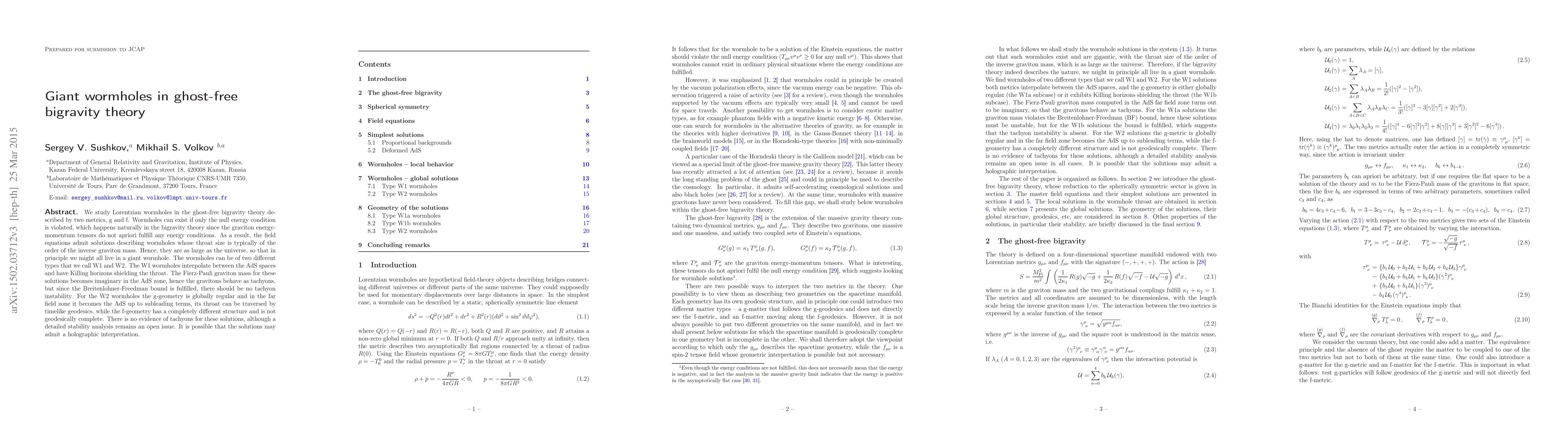 This work distinguishes itself by examining giant wormholes in the ghost-free bigravity theory, offering a fresh perspective on large-scale cosmic structures and potential alternatives to standard cosmological models.
