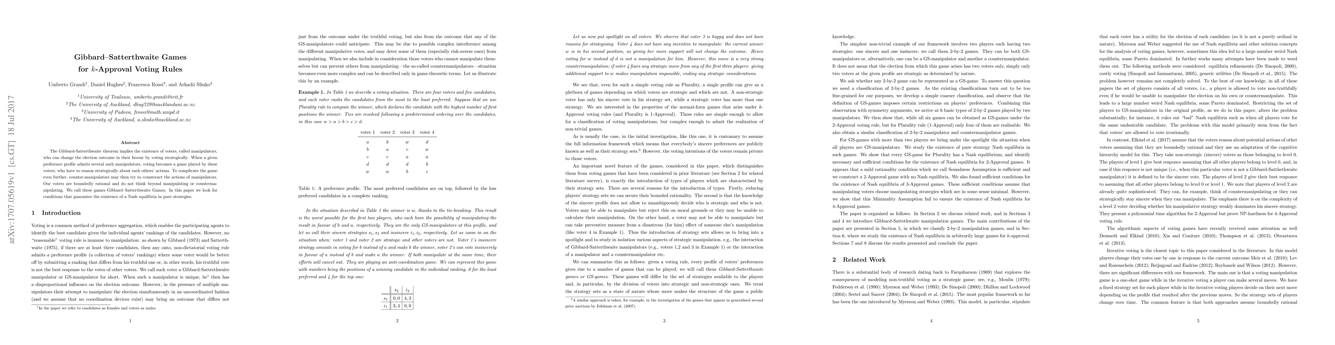 This paper explores Gibbard-Satterthwaite Games under k-approval voting rules, where voters can strategically manipulate election outcomes. It seeks conditions ensuring the existence of Nash equilibria in pure strategies for these boundedly rational voters who only consider manipulation or counter-manipulation.