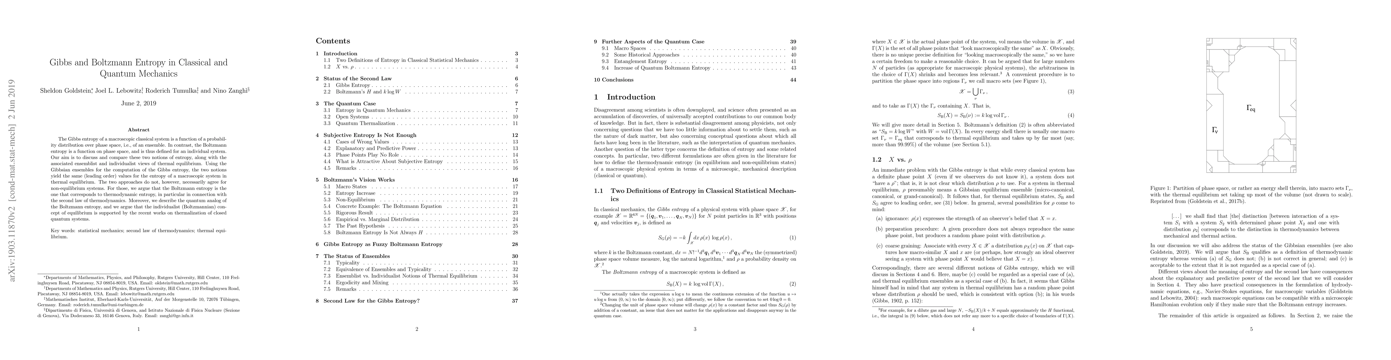 This paper compares Gibbs and Boltzmann entropy in classical mechanics, showing they yield the same leading order values for equilibrium systems but diverge for non-equilibrium states. It argues that Boltzmann entropy aligns better with thermodynamic entropy and discusses its quantum analog, supporting individualist views of equilibrium.